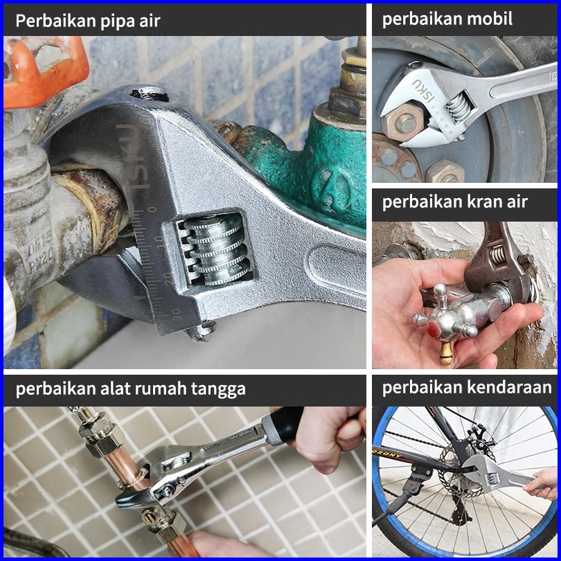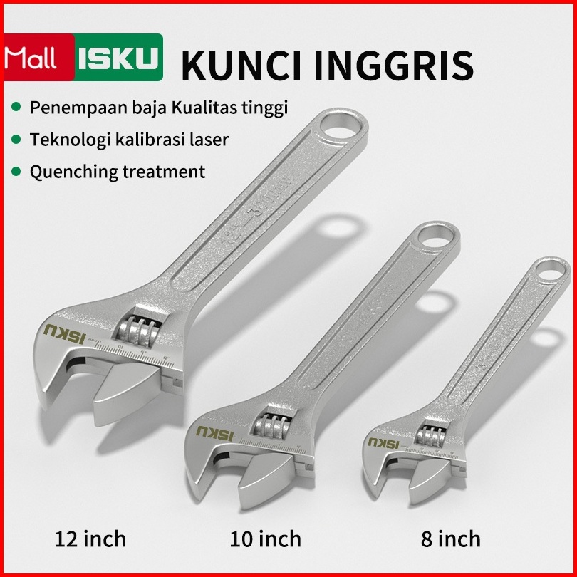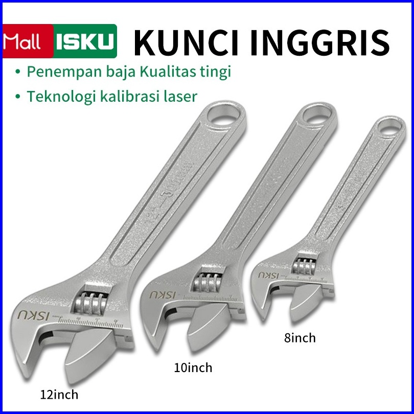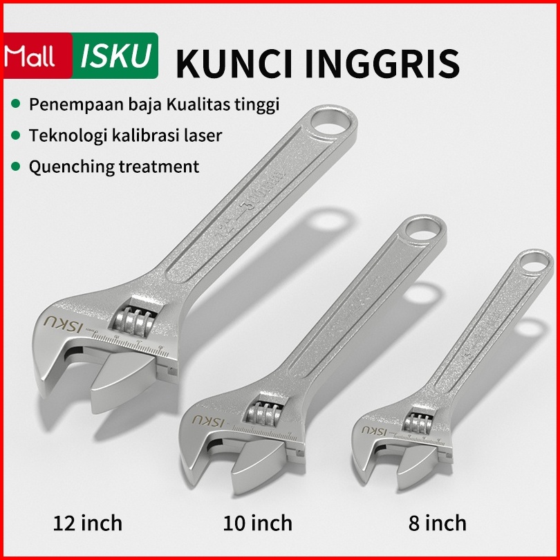 Isku Kunci Inggris Ukuran 8 10 12 Inch Adjustable Wrench 8-12 Inch