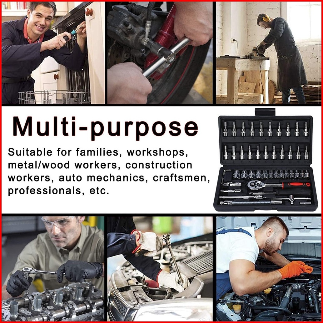Jld Kunci 1set Lengkap 46 Pcs Kunci Shock Set 1 4 Kunci Sok Socket Wrench Pas Socket Set Mobil Motor Lengkap Socket Tool