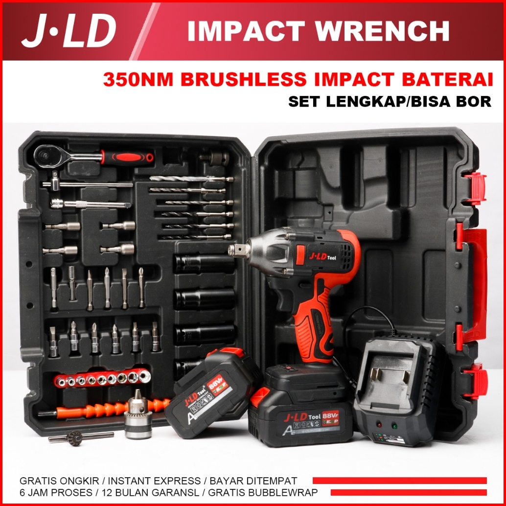 Jld Mesin Bor Impact Baterai 88vf Fullset Impact Bor 2baterai 350nm Impact Wrench Impact Jld Set