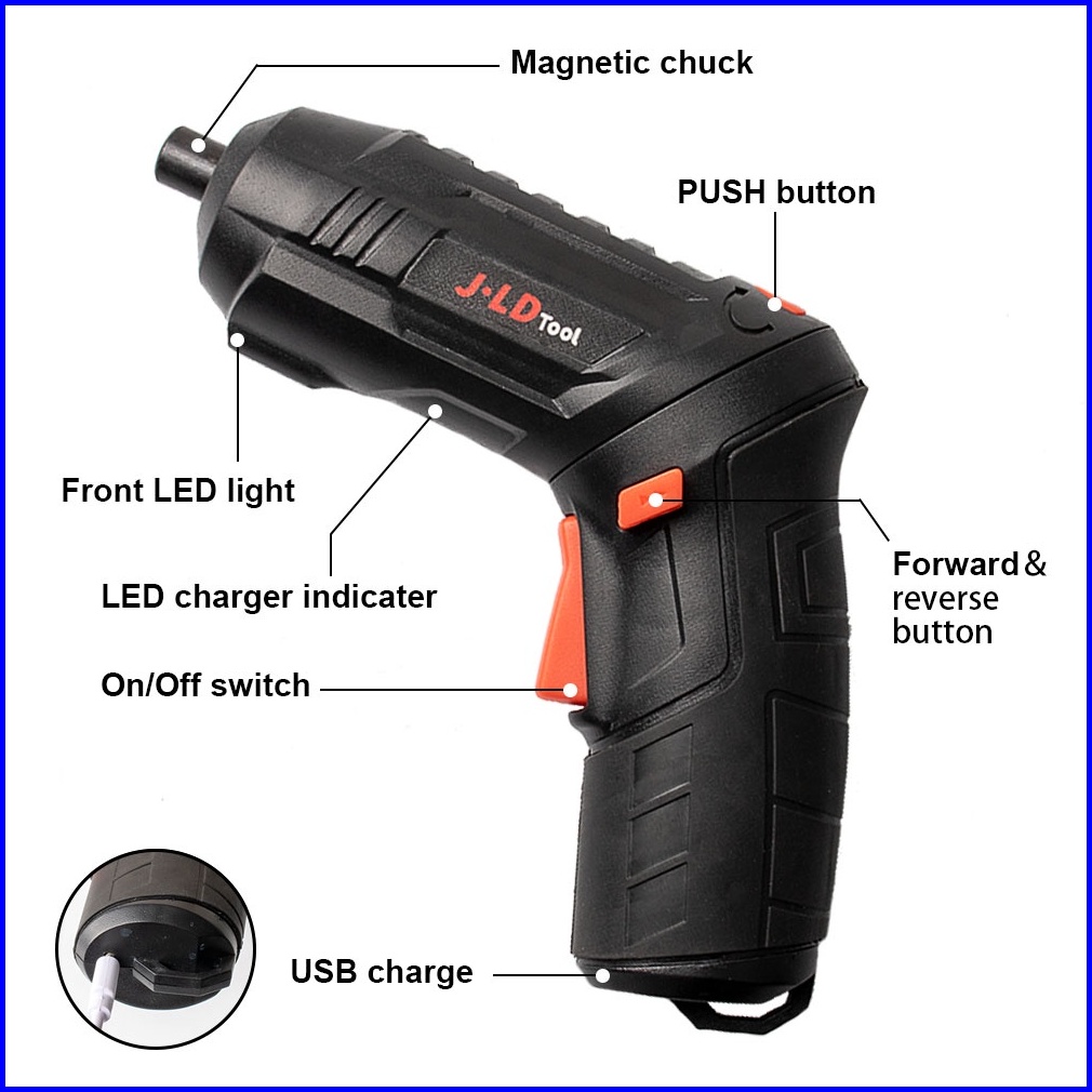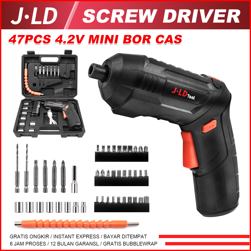 Jld Mesin Bor Obeng Elektrik Cordless Screwdriver 4.2v Mesin Bor Cordless Mini 47pcs Set Bor Mini Screwdriver Baterai Bo