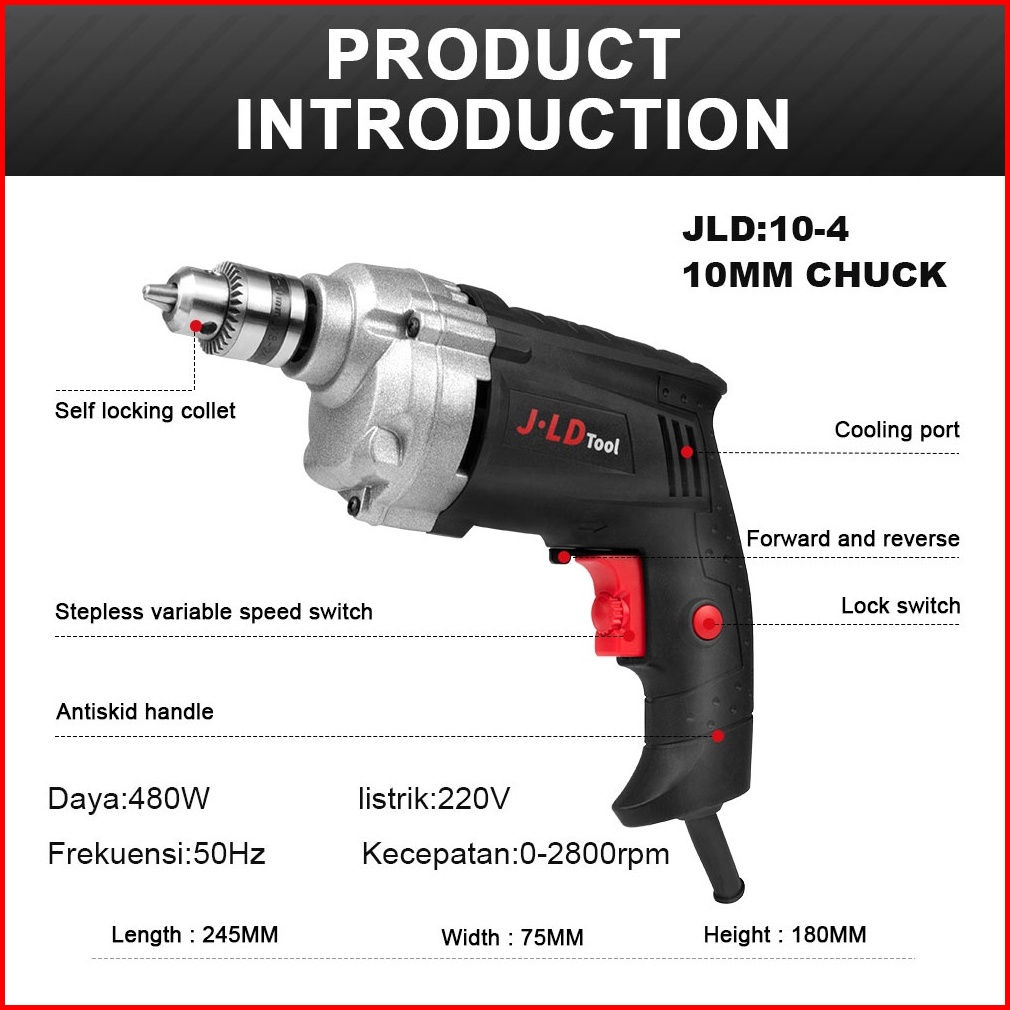Jld 480w Mesin Bor Listrik 10mm Bor Tembok Listrik Bolak Balik Mesin Bor Murah Electric Drill J10-4