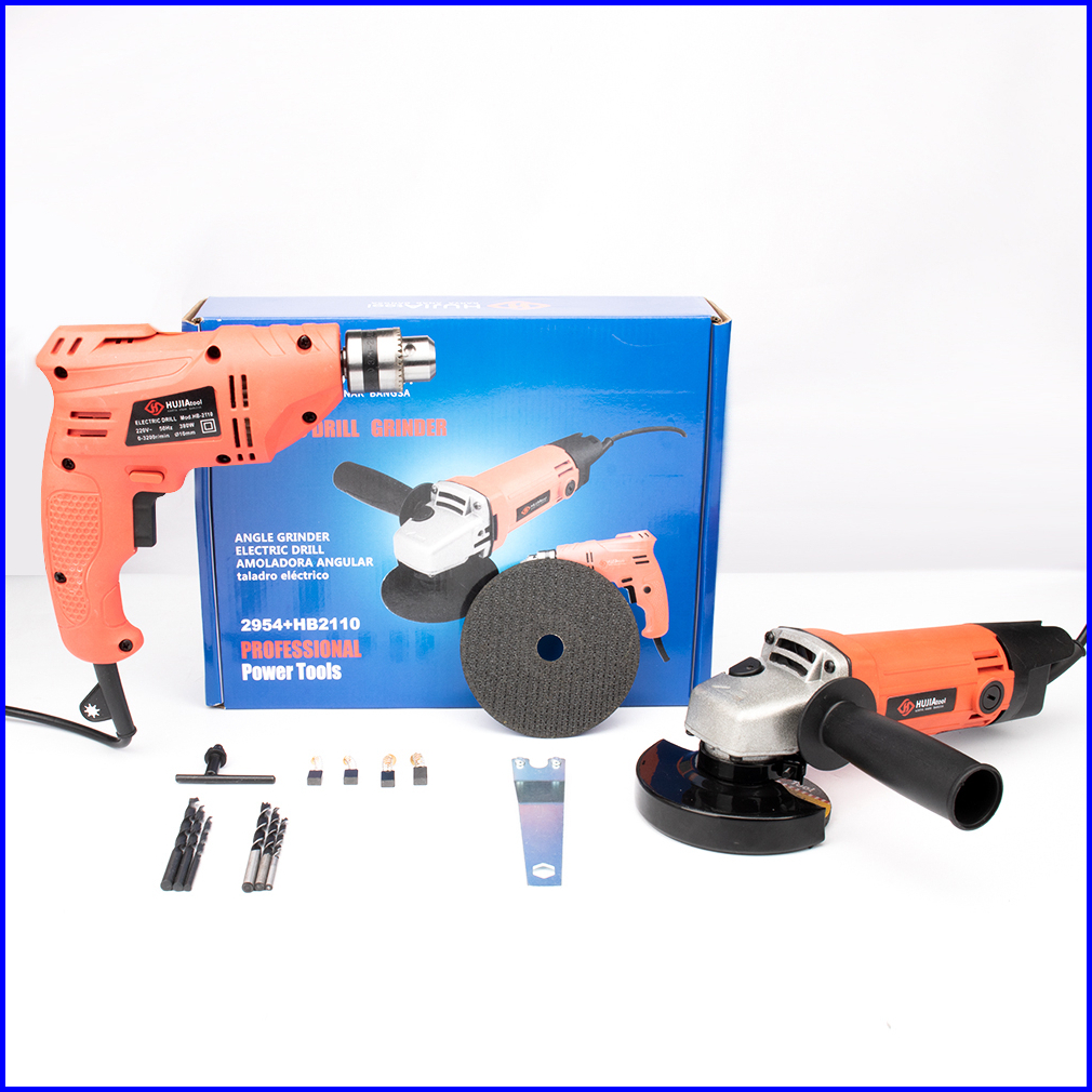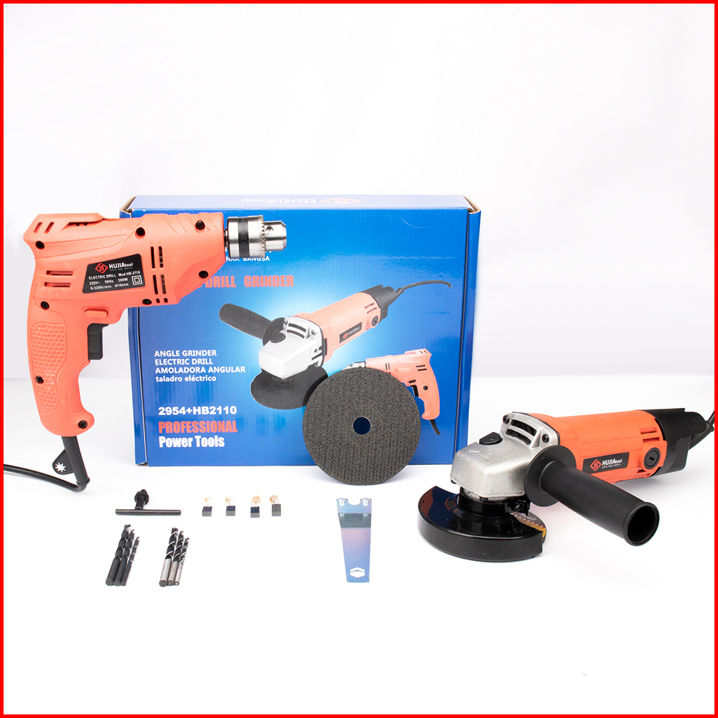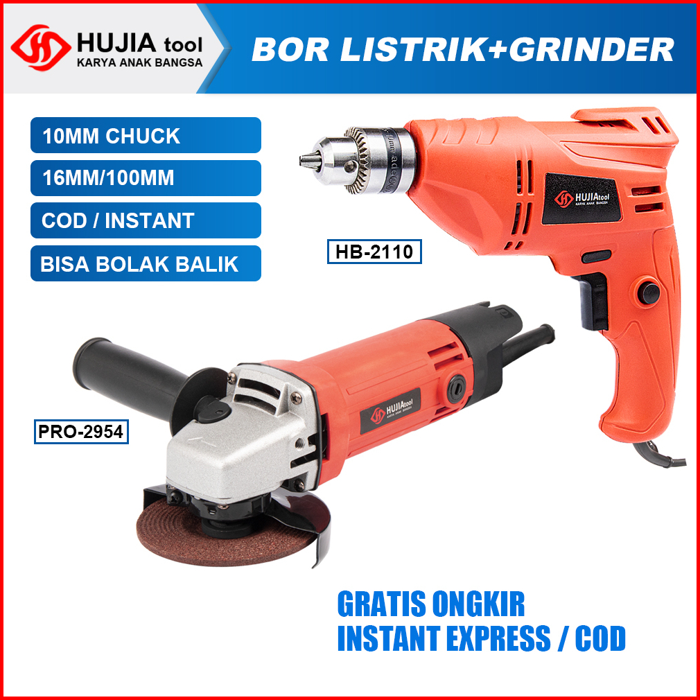 Hujia 10mm Mesin Bor Listrik Murah 4inch 100mm Mesin Grinda Set Bor Listrik 1 Set Lengkap Mesin Listrik Cuci Gudang 380w