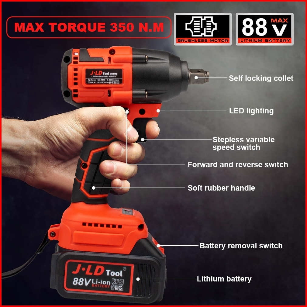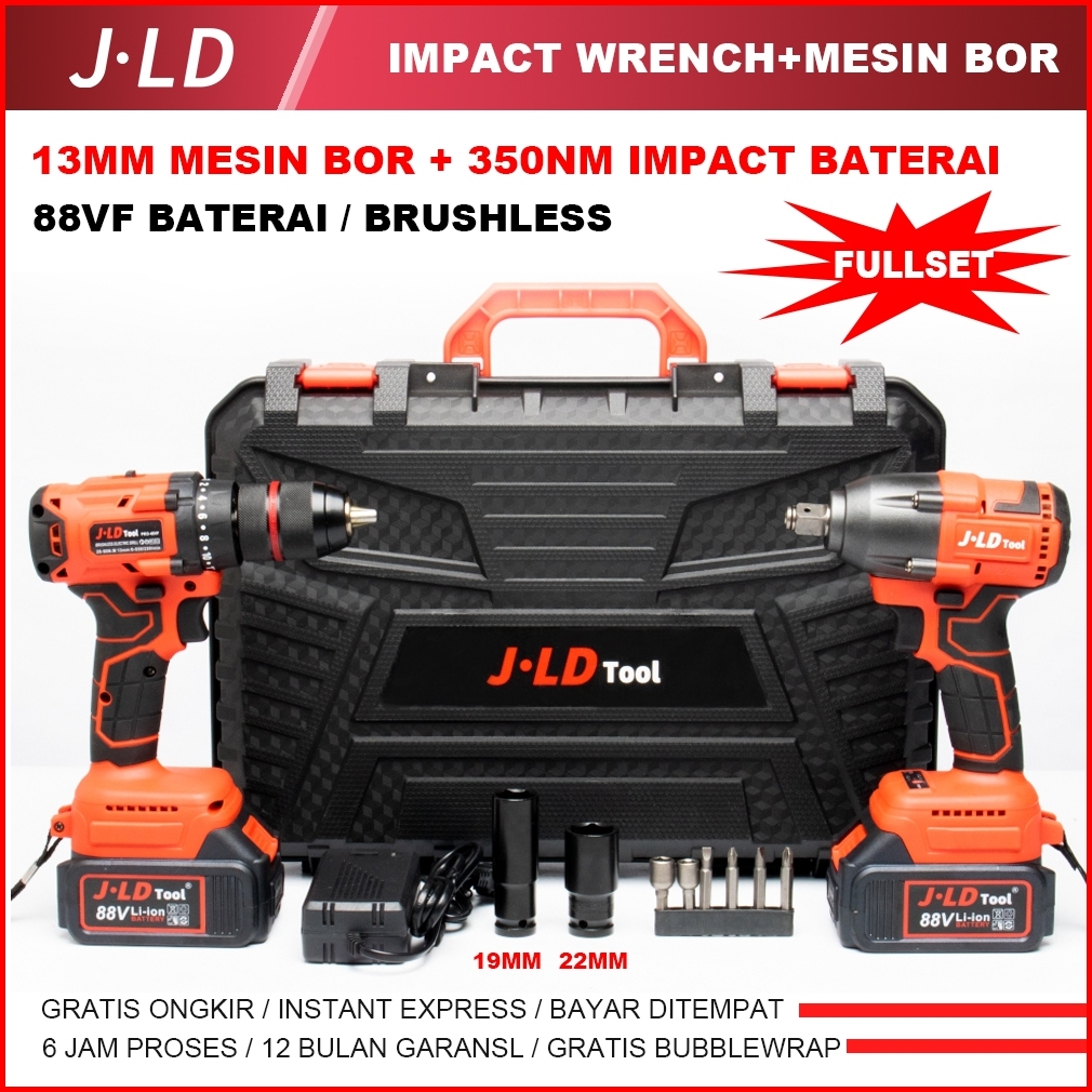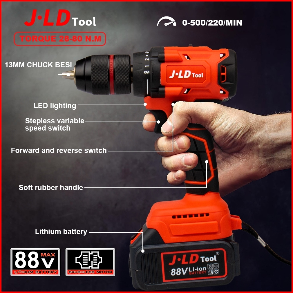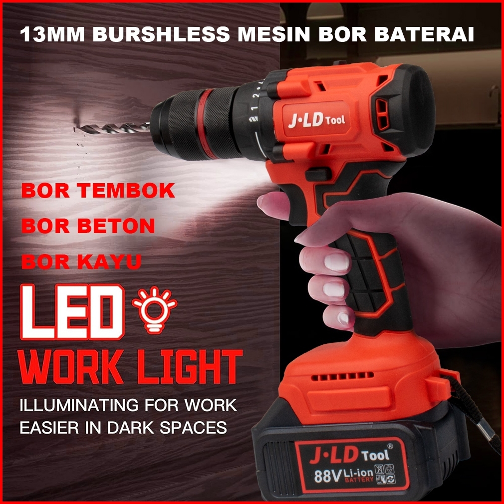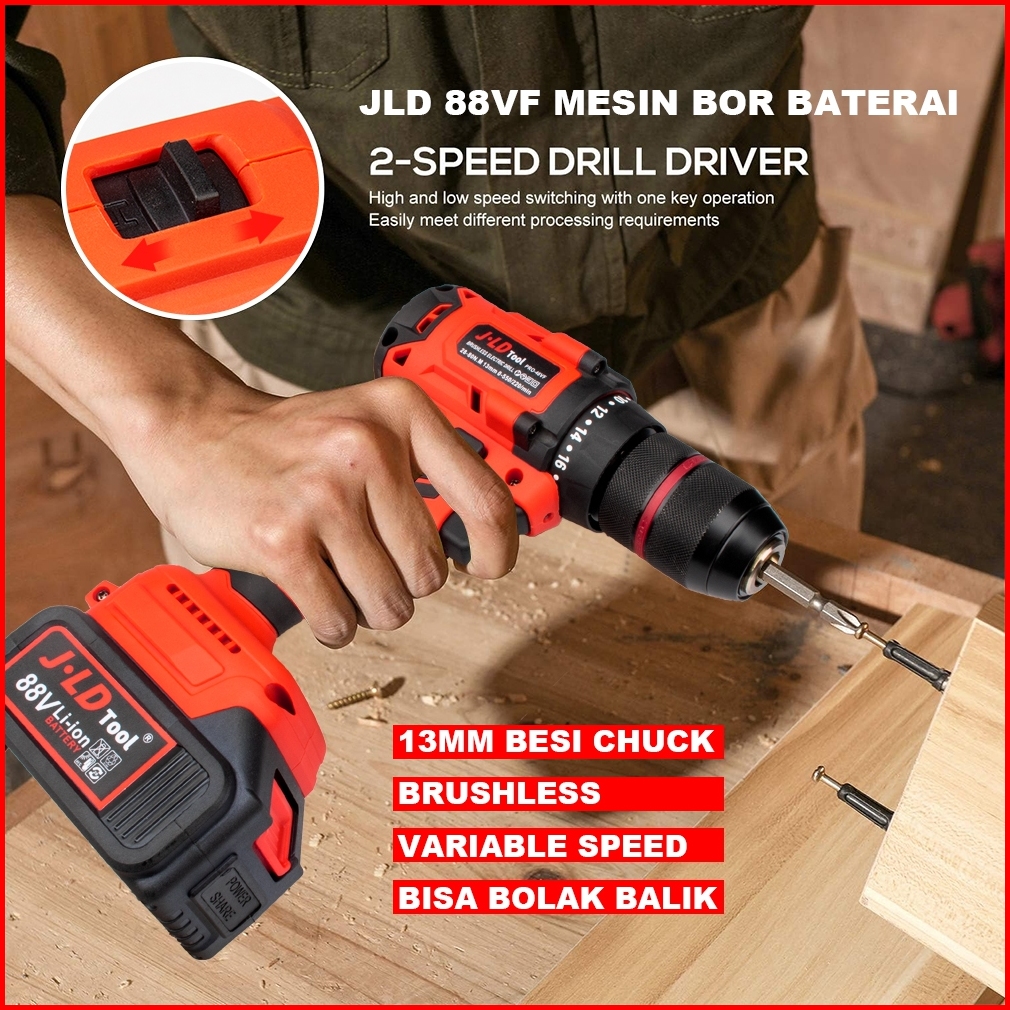 Jld 13mm Mesin Bor Baterai Brushless 88vf Bor Impact Baterai Set 350nm Bor Impact Inpek Pembuka Baut Cvt Bor Tembok Bor