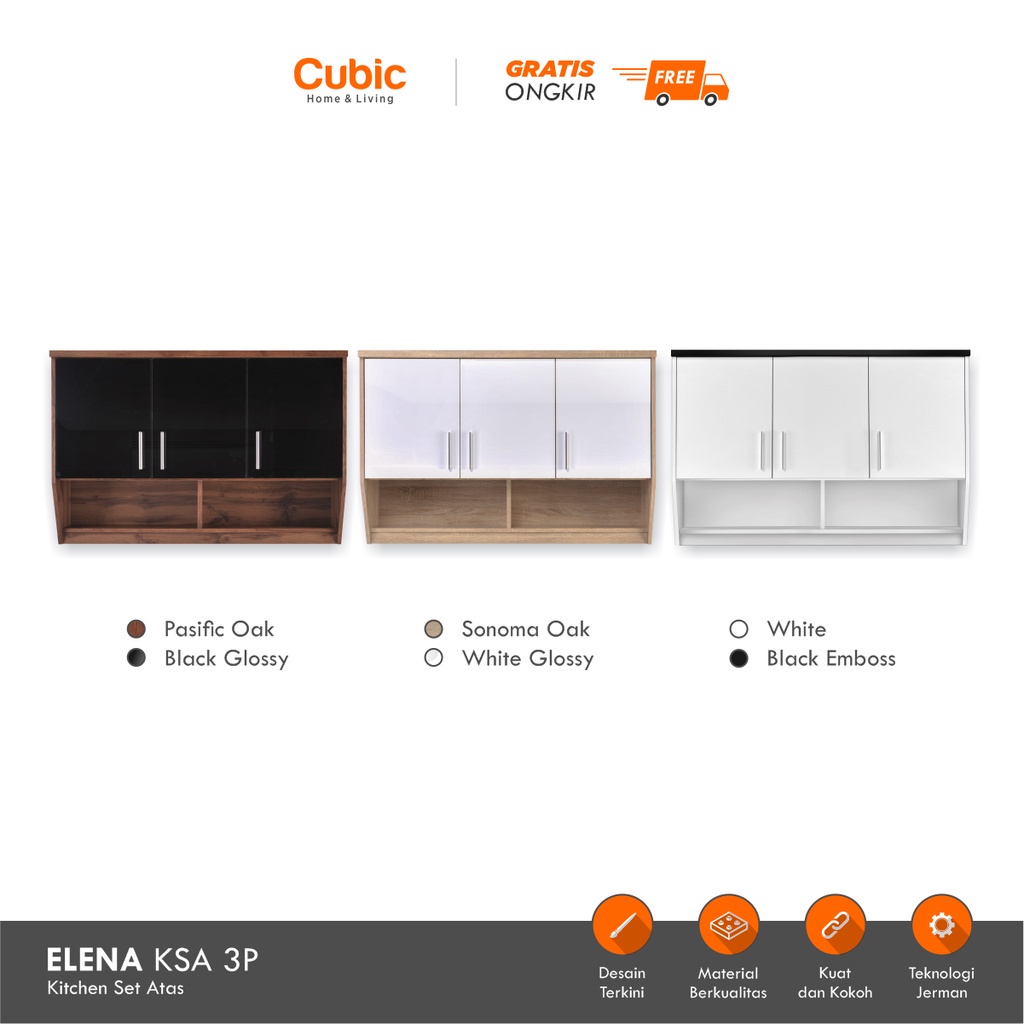 [Star]Cubic Kitchen Set 3 Pintu Minimalis / Rak Atas Dapur / ELENA AVE KSA 3P - Hitam / Putih