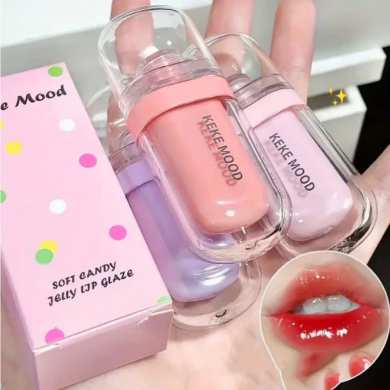 KEKEMOOD Jelly Lip Gloss Fit Tint Watery Lip Glaze Tender Keke Mood Soft Candy Jelly Lip Glaze Lip Gloss Lucu Unik Keke
