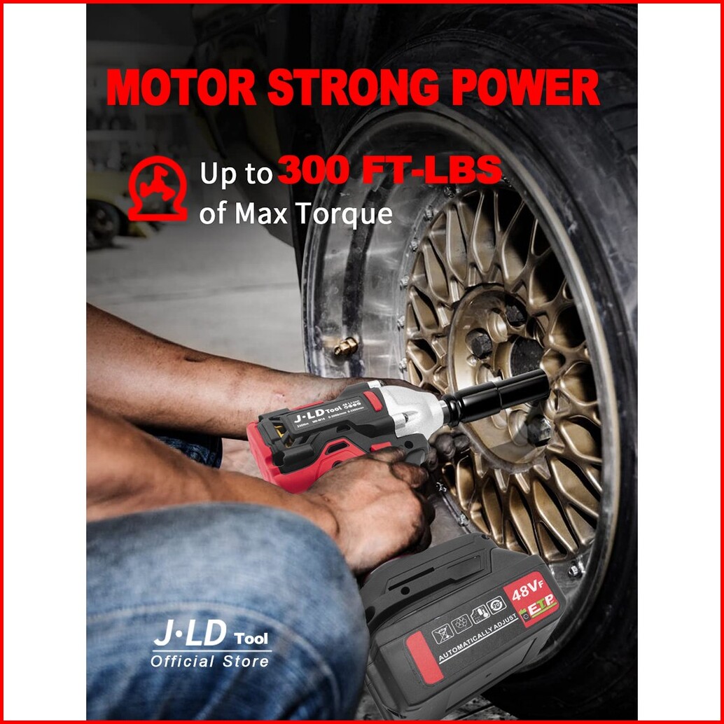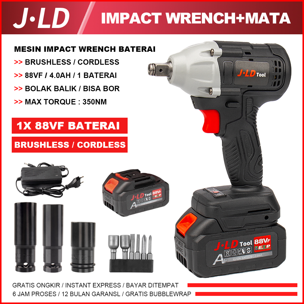 Jld Cordless Impact Wrench Brushless 350n.m Baterai 48vf Mesin Bor Jv88 Untuk Baut Mobil Impact Jld 48v Original 2 Bater
