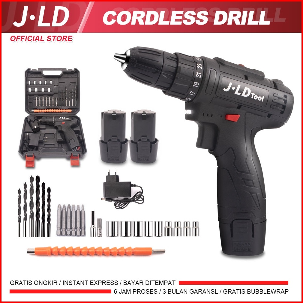 Jld 10mm Mesin Bor Baterai Cas Komplit Cordless Bor Listrik 1 Set Lengkap Murah Bor Cordless Impact Bor Baterai Kayu Bet