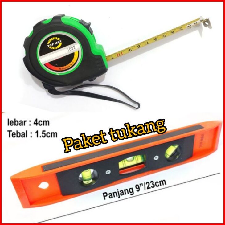 Paket Meteran 3 5 7 5 Metr Waterpass Magnet Mini 9 Inch Waterpas Water Pas Magnet Torpedo Dn 9
