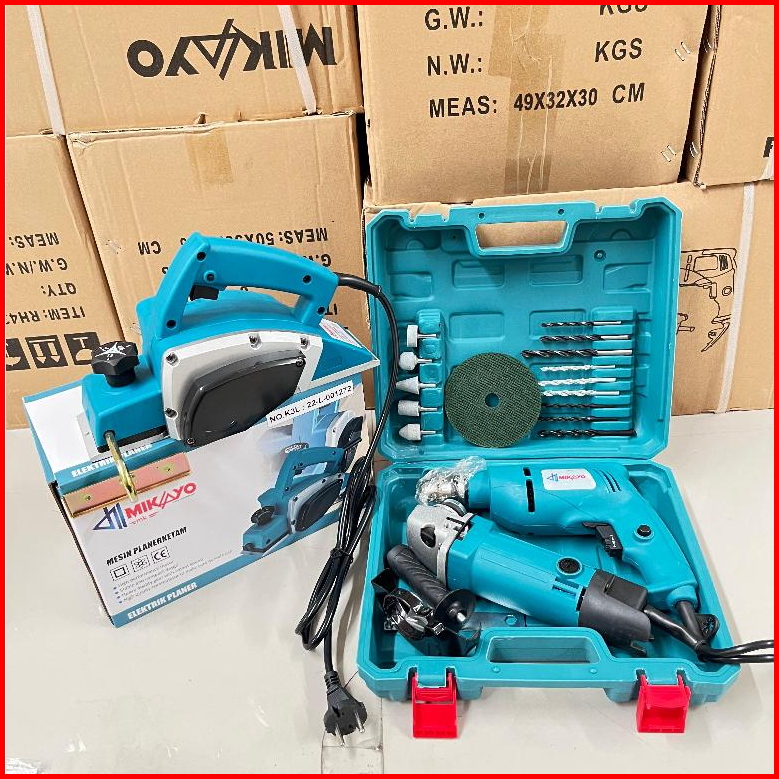 Paket Mesin Serut Elektric Planer Bor Dan Gerinda Satu Set Koper