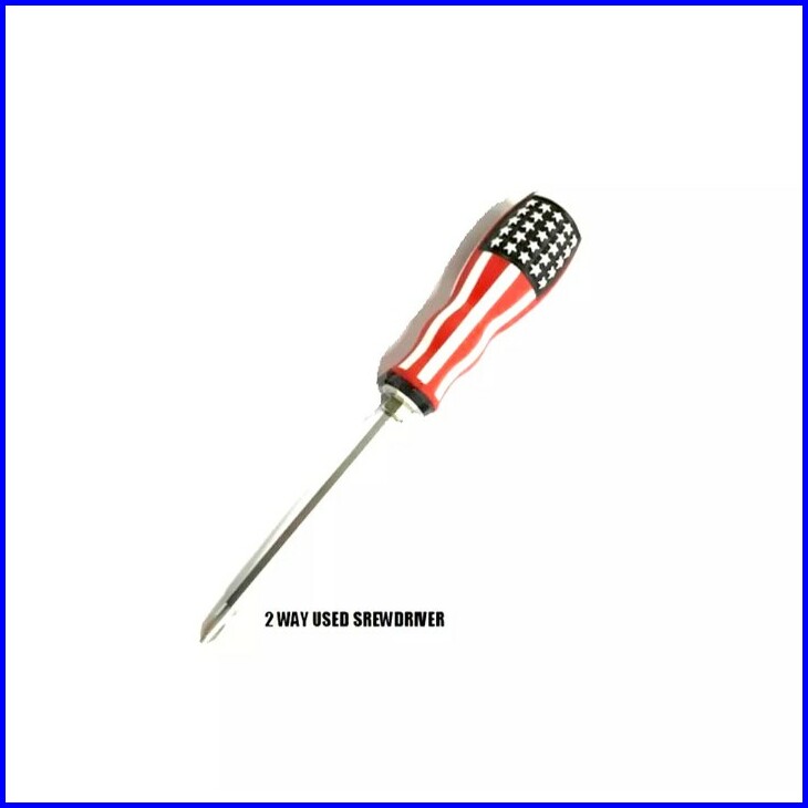 Obeng Magnet Amerika Bolak Balik Gagang Karet 2in1 8 Inch 2 Way Screwdriver Plus Minus Motif Obeng Kembang Serbaguna