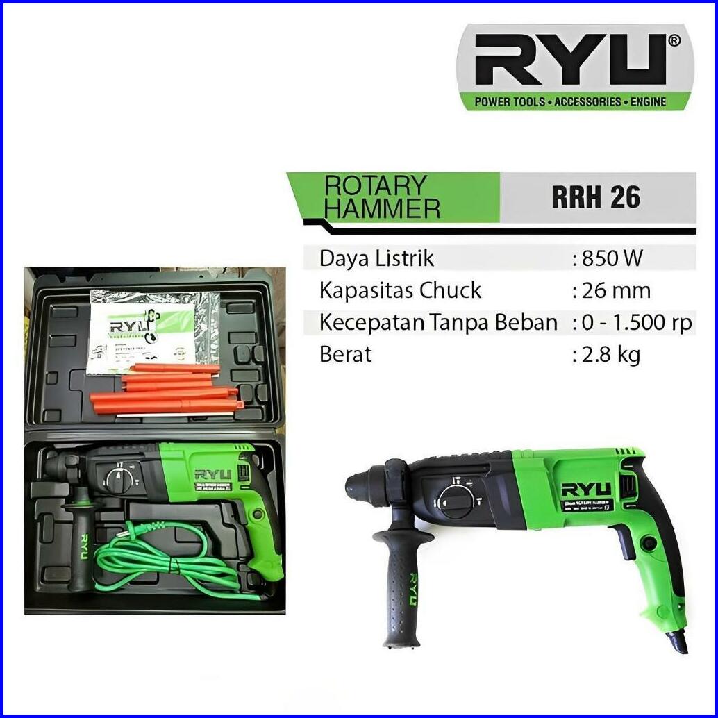 Ryu Rrh-26 Mesin Bor Bobok 26mm Rotary Hammer Drill Impact Beton Tembok Listrik Bobok Rrh 26