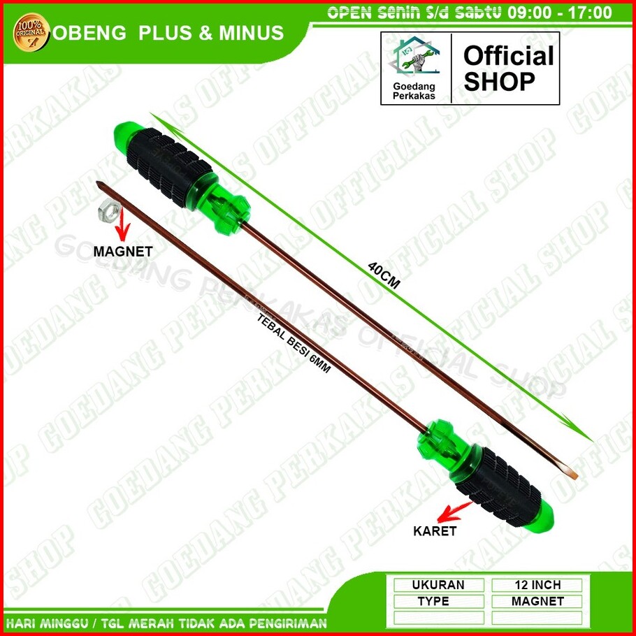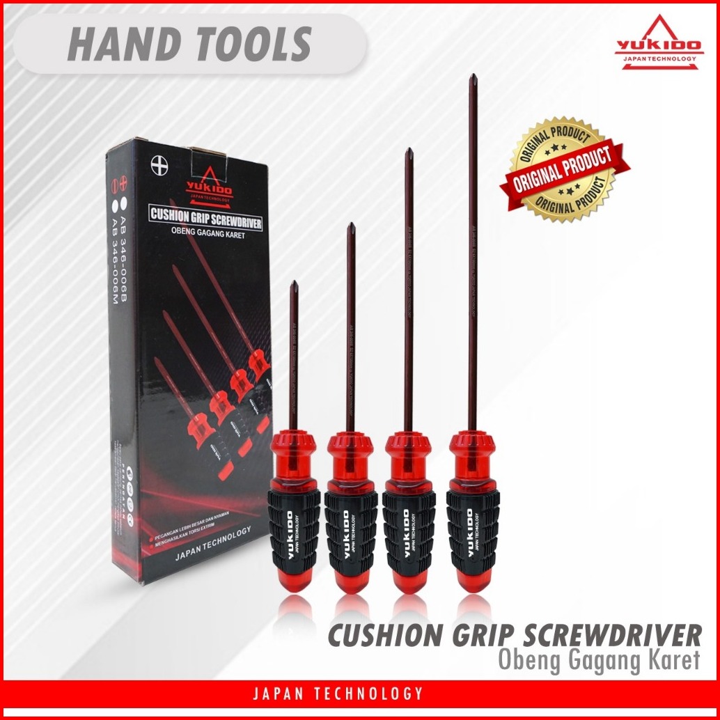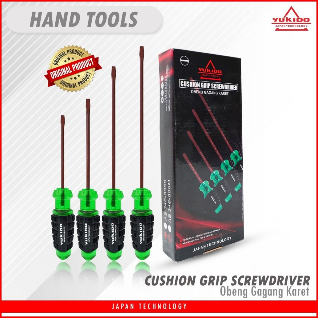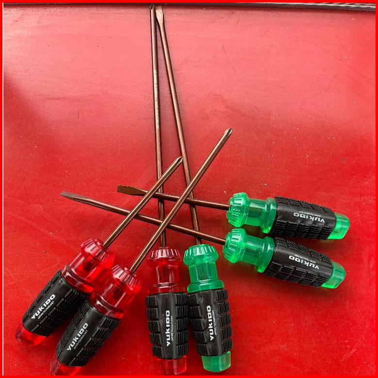 Obeng Gagang Karet Panjang 12 Inch - Rubber Handle Screwdriver By Yukido