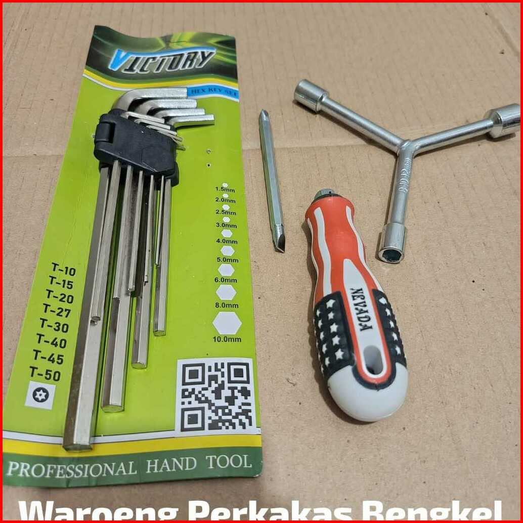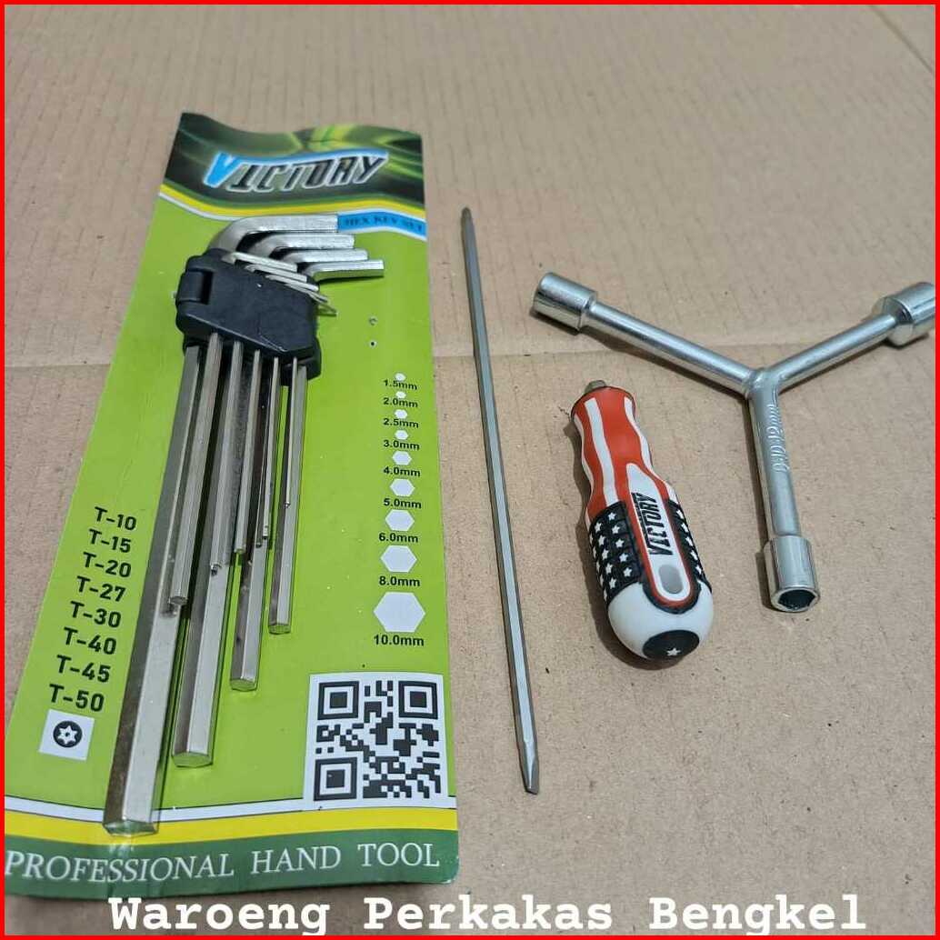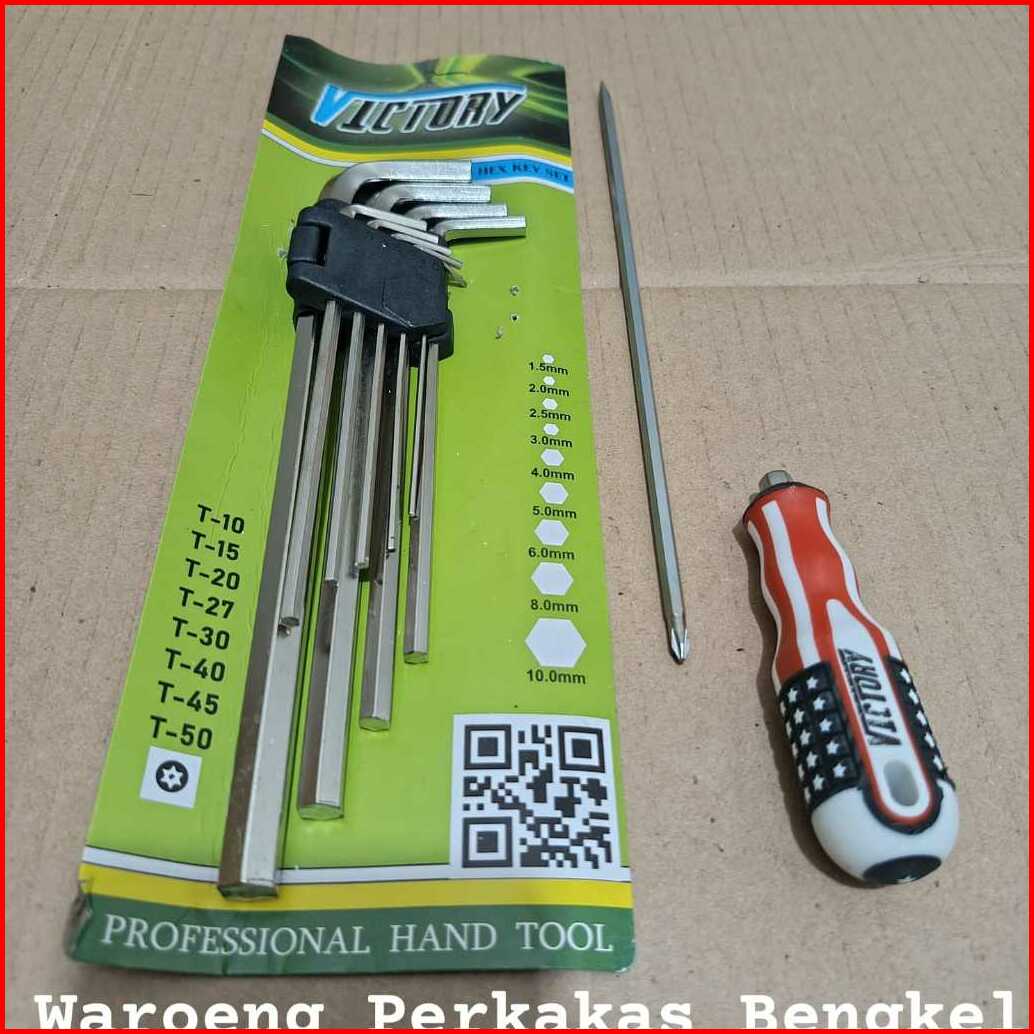 Paket Tool Kit Kunci L Panjang Victory Set 9 Pcs Kunci Sok Y 8-10-12 Mm Obeng Seting Panjang -