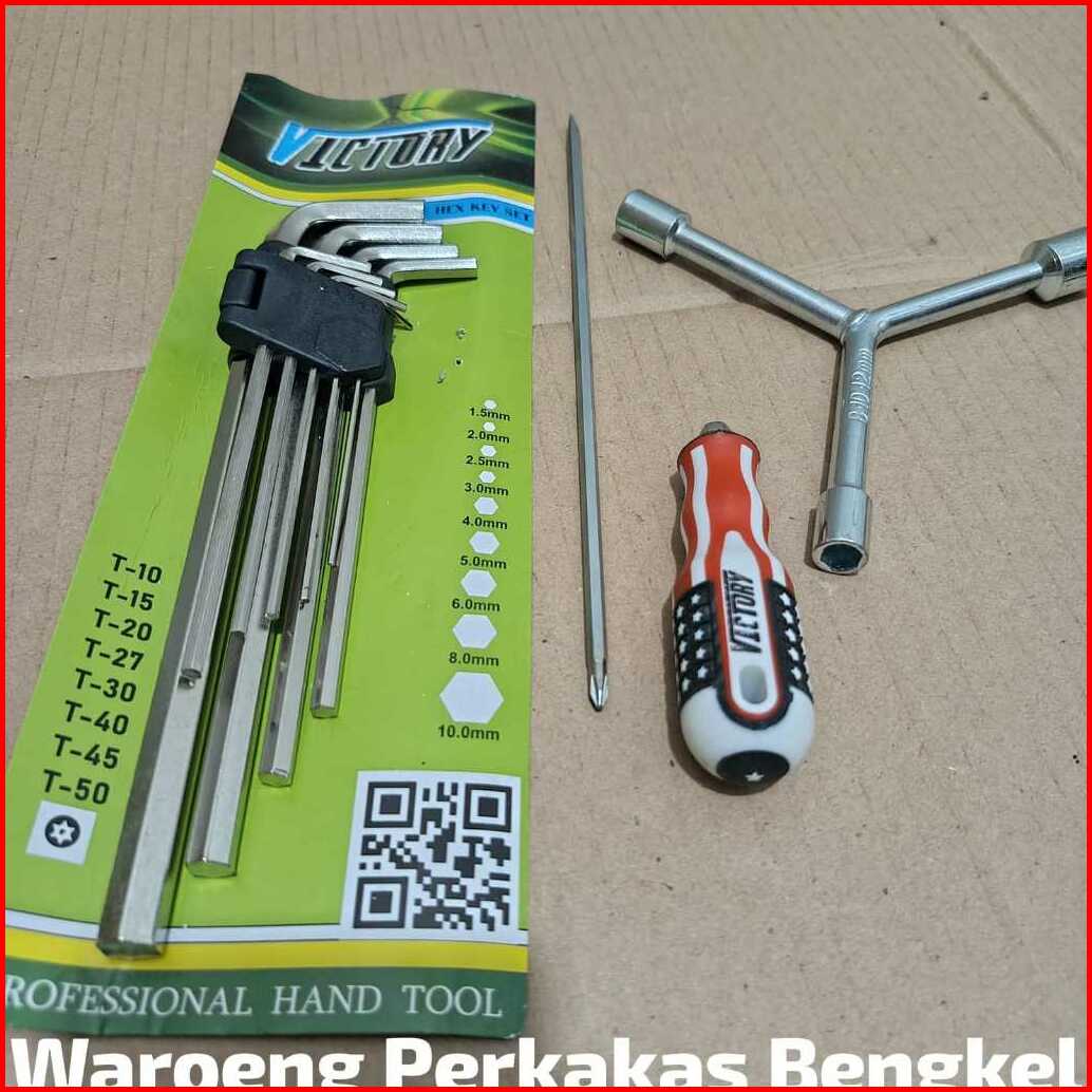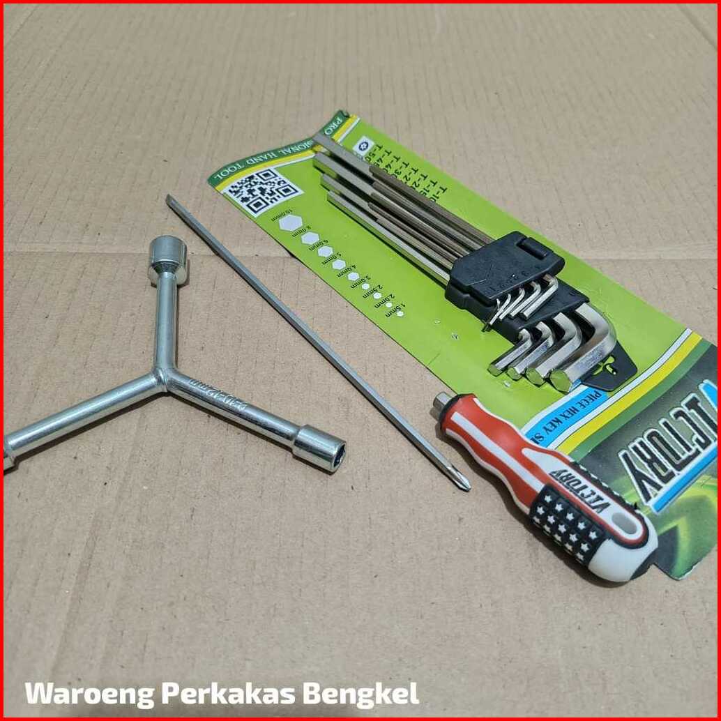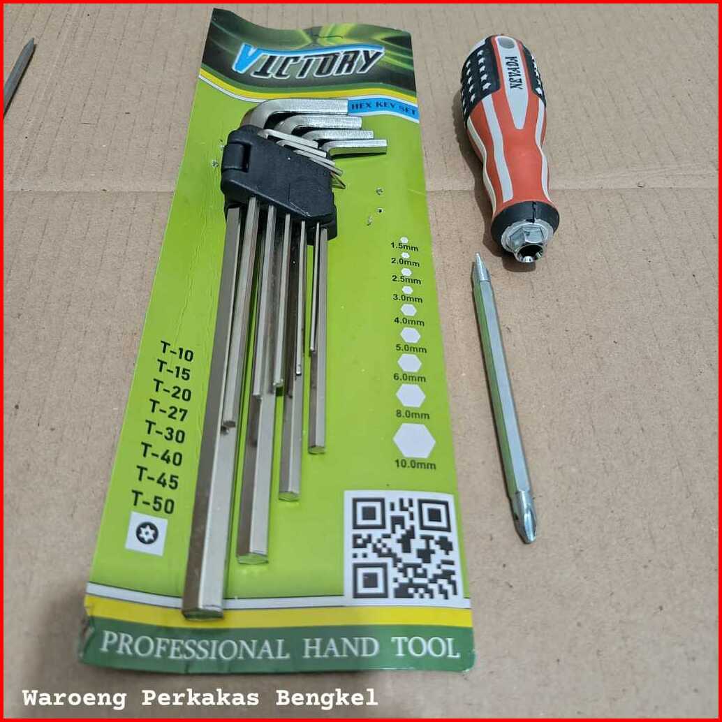 Paket Tool Kit Kunci L Panjang Victory Set 9 Pcs Kunci Sok Y 8-10-12 Mm Obeng Seting Panjang -