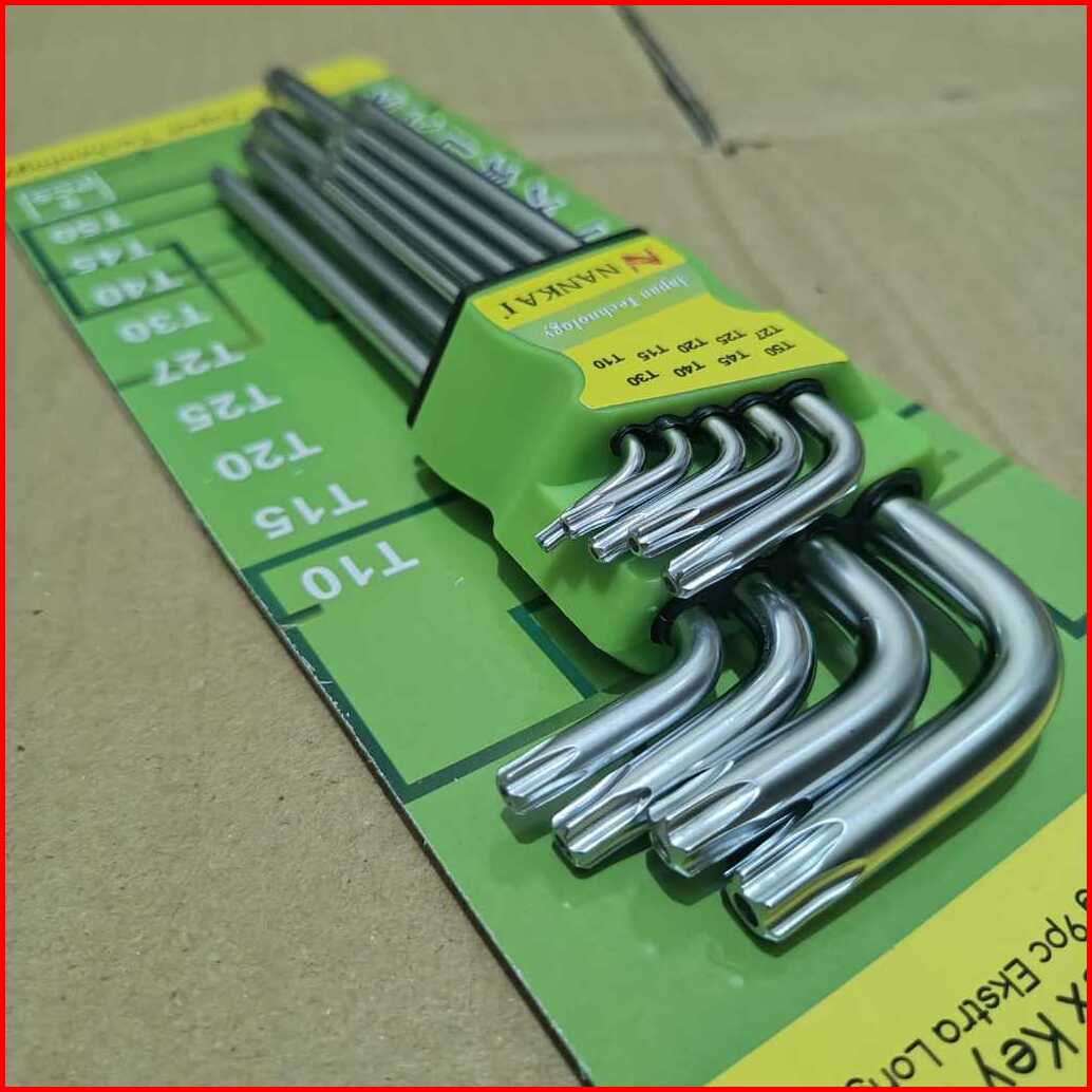 Kunci L Bintang Panjang Tekiro Set 9 Pcs Tanpa Lubang Torx Key Long Lengkap Murah