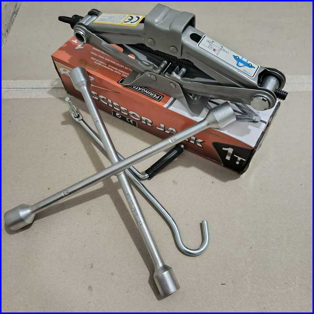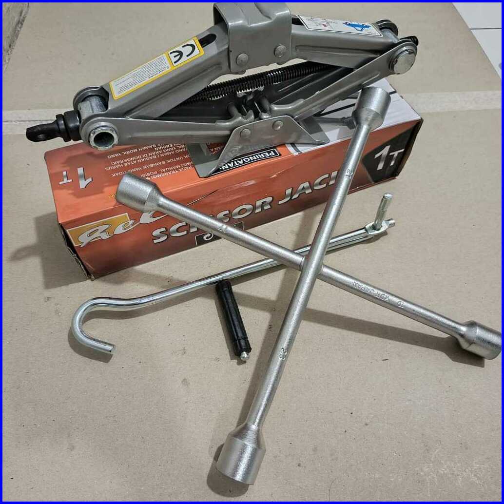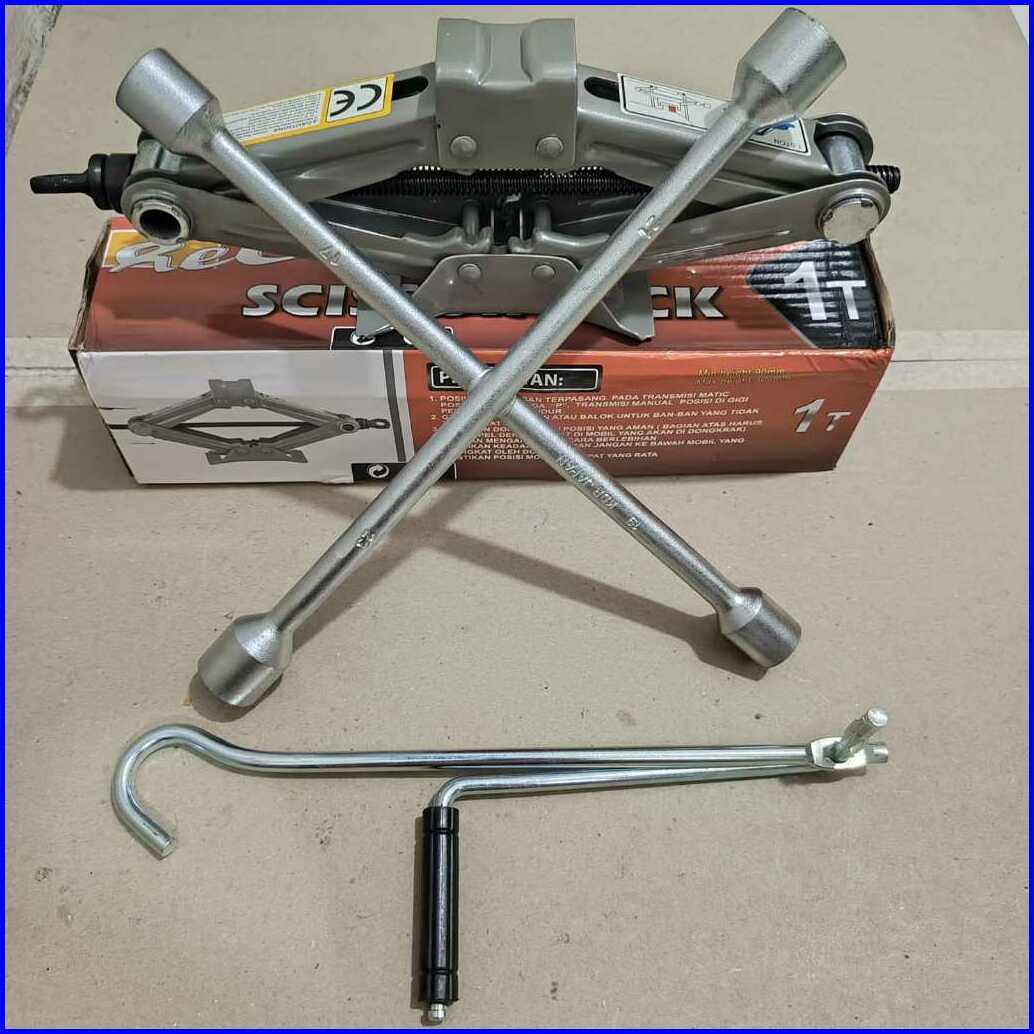 Paket Dongkar Mobil 2 Set Dongkrak Jembatan 1 Ton Dan Kunci Roda Palang Ukuran 17 X 19 X 21 X 23mm