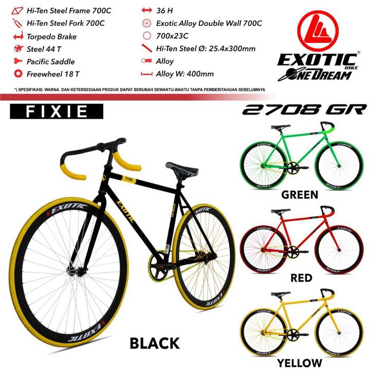 Sepeda Fixie Exotic 2708GR Fixie 700C Rim Alloy 700Cx23C,sepeda murah