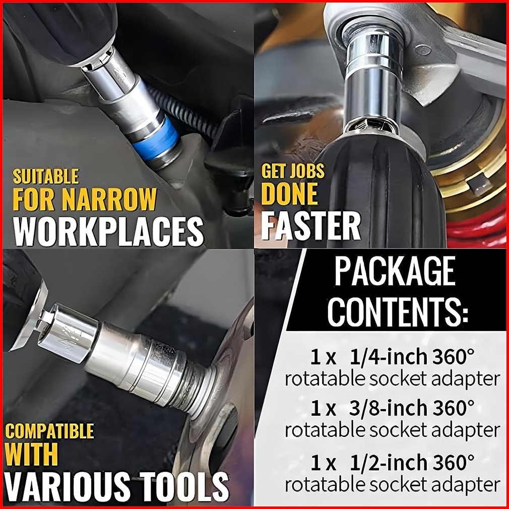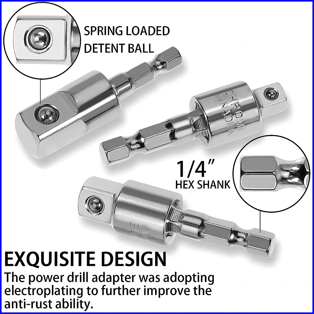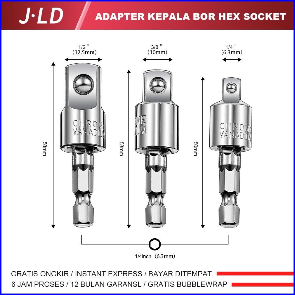 Jld 3pcs Adapter Kepala Bor Hex Socket 1 2 3 8 1 4inch 360 Degree Rotating Sleeve Connecting Rods Impact Driver Adaptor