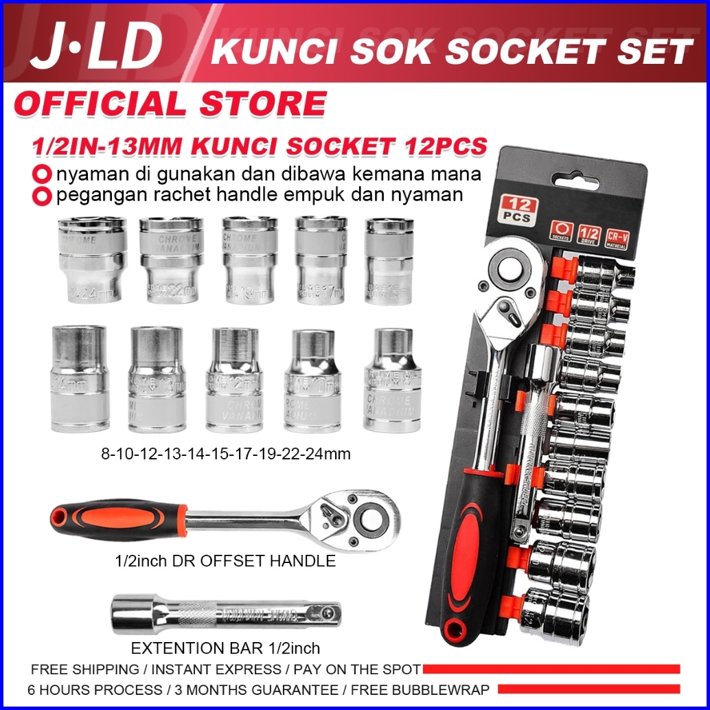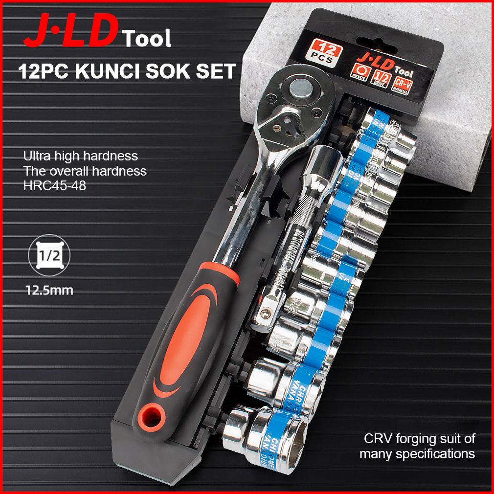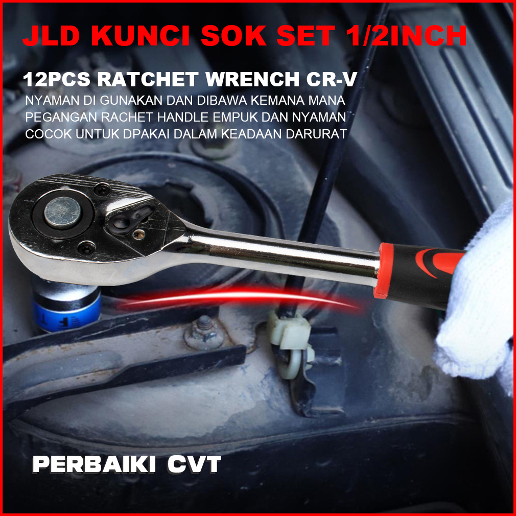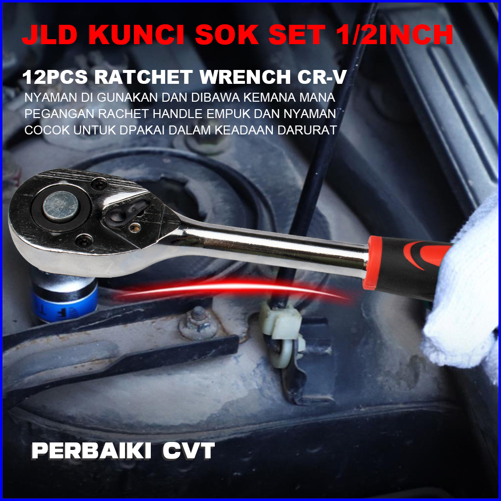 Jld 1 2in Kunci Set Socket Sok Cr-v 12pcs Kunci Sok Wrench Rachet Alat Perkakas Lengkap Motor Rachet Handle Multifungsi