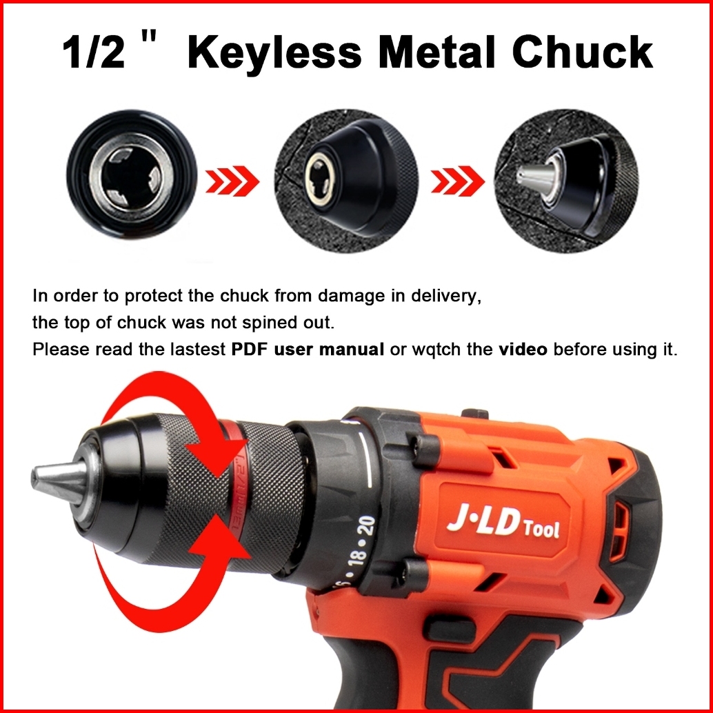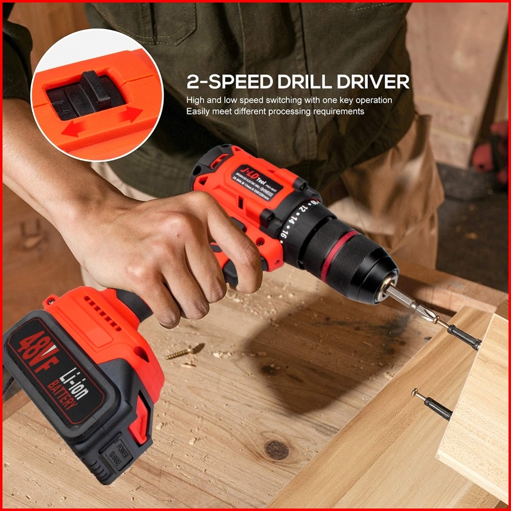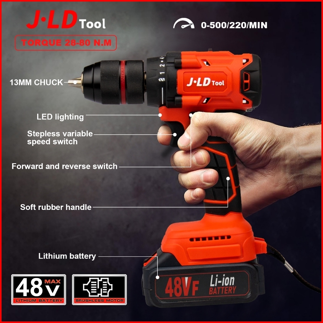 Jld 48vf Mesin Bor Baterai Brushless 13mm Bor Impact Bor Cas 80n.m 2baterai Full Set