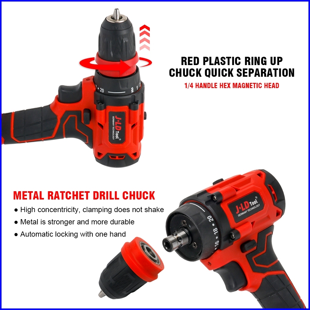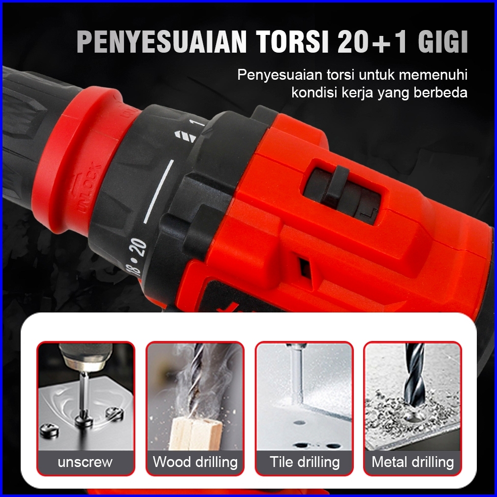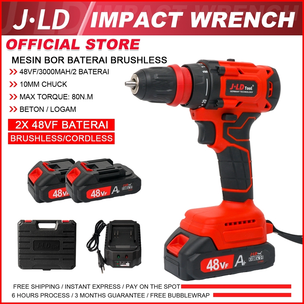 Jld 48vf Mesin Bor Baterai Brushless 10mm Bor Impact Bor Cas 80n.m 2baterai Full Set