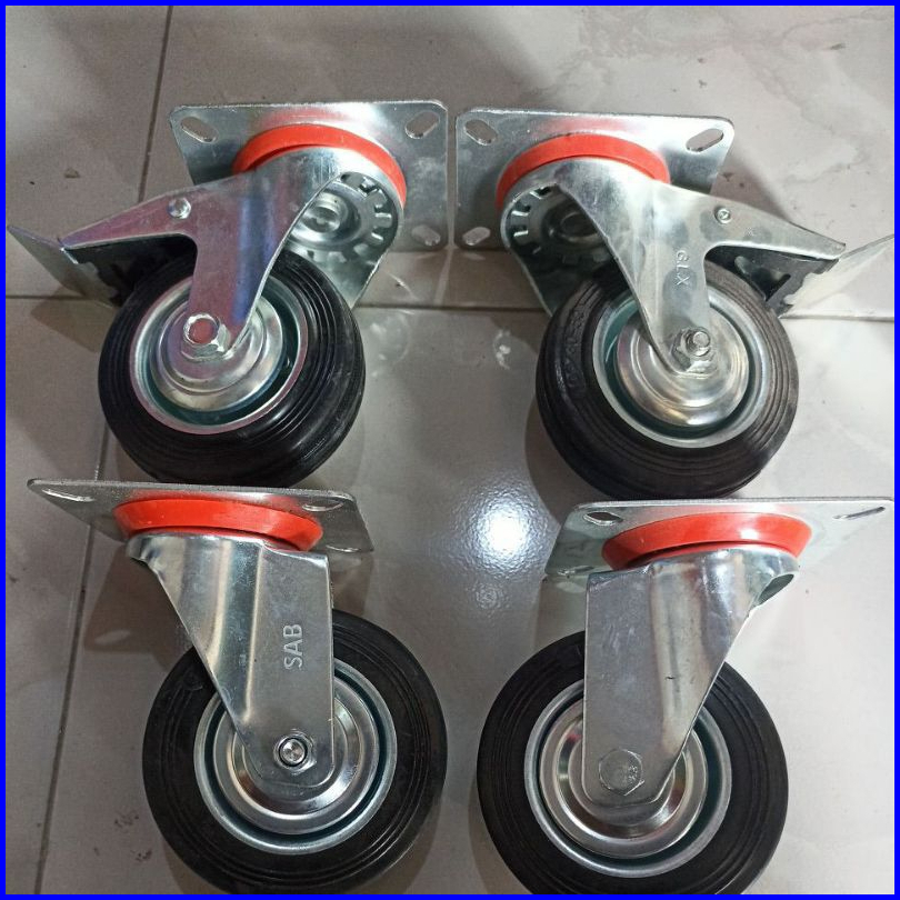 Roda Troly Set 4pcs Roda Etalase Roda Troli Roda Karet 3 Inch Hidup Putar