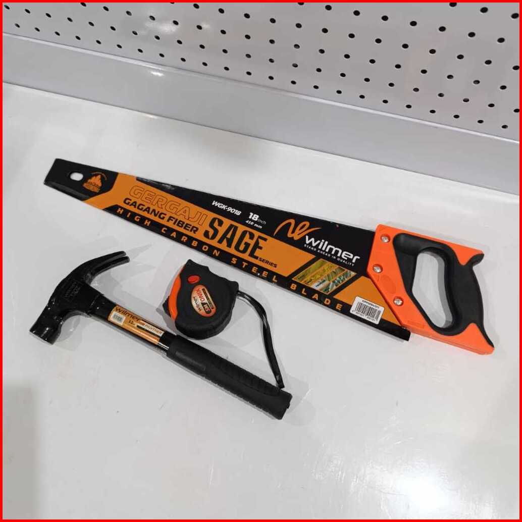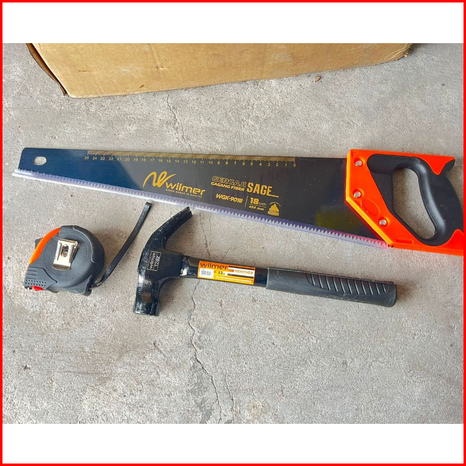 Paket Tukang - Gergaji Kayu Baja Asli Siap Pakai - Palu Kambing 12oz Magnet Gagang Besi - Meteran Viper 3 Meter