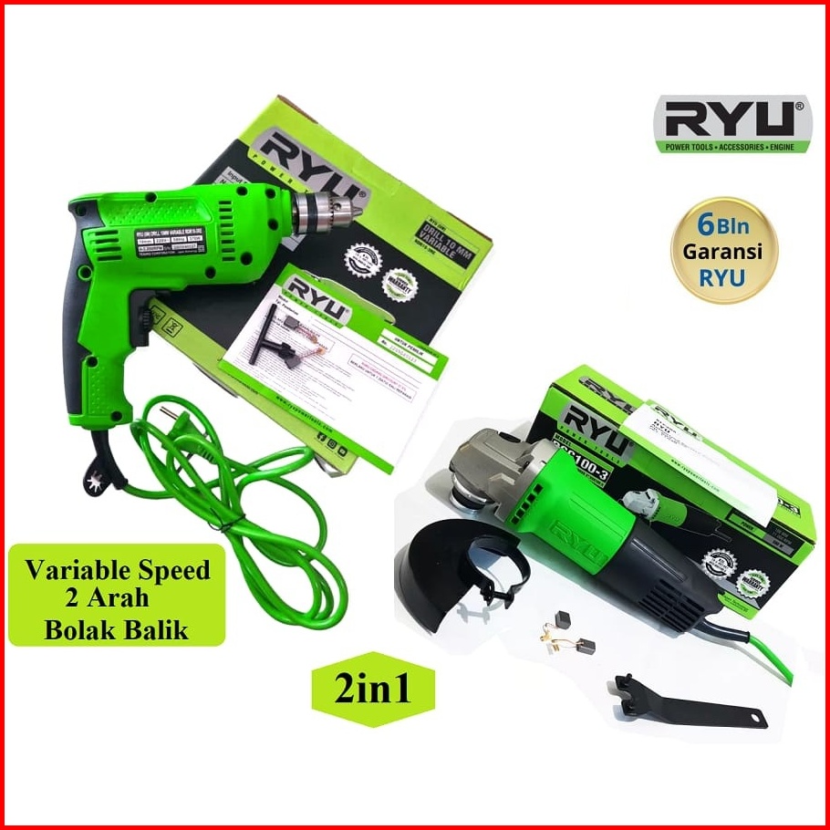 Promo Paket 2 Set Ryu Mesin Bor Listrik 10 Mm Ryu Mesin Gerinda 4 Inch