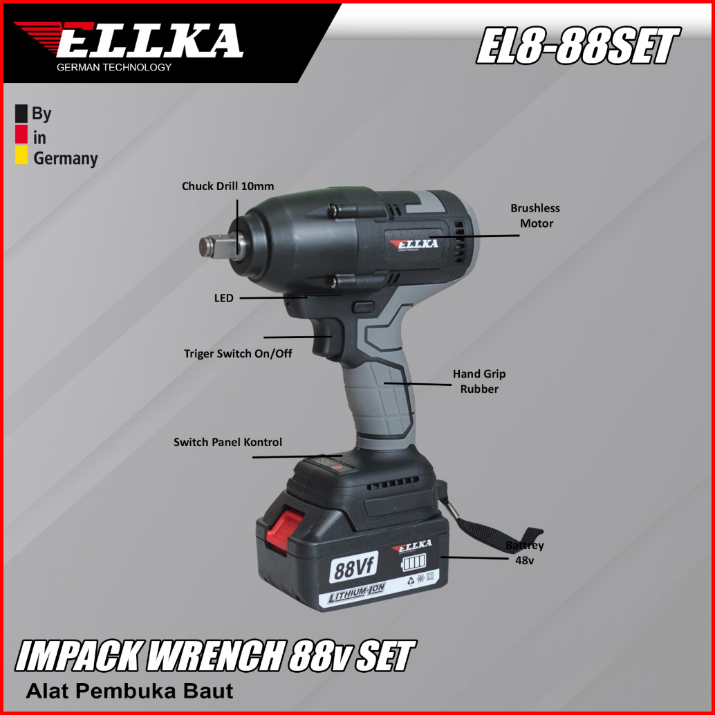 Raja Impact Wrench Cordless 2 Baterai 88v 600nm German Technology