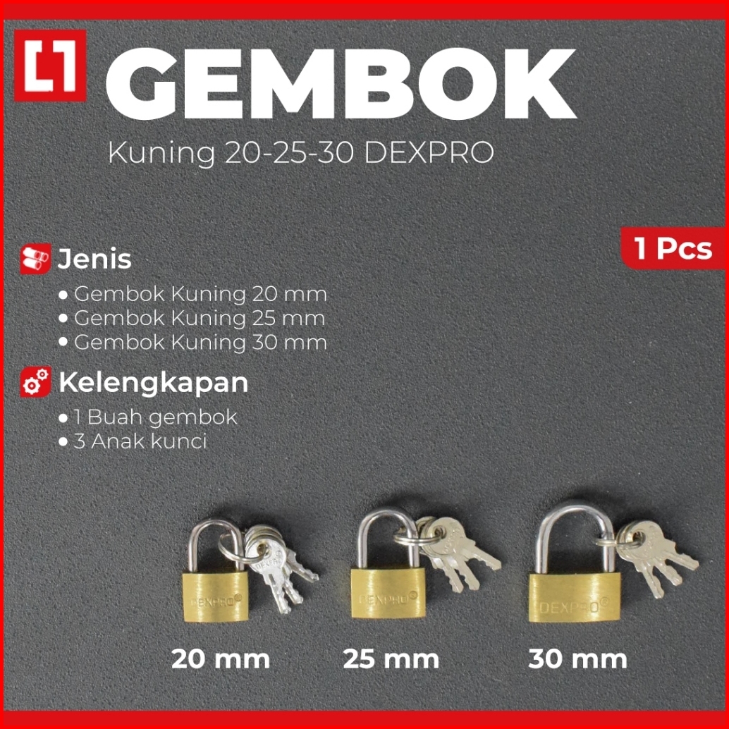 Gembok Kuning Kecil Koper Laci Lemari Tas - 20 25 30mm - Dexpro