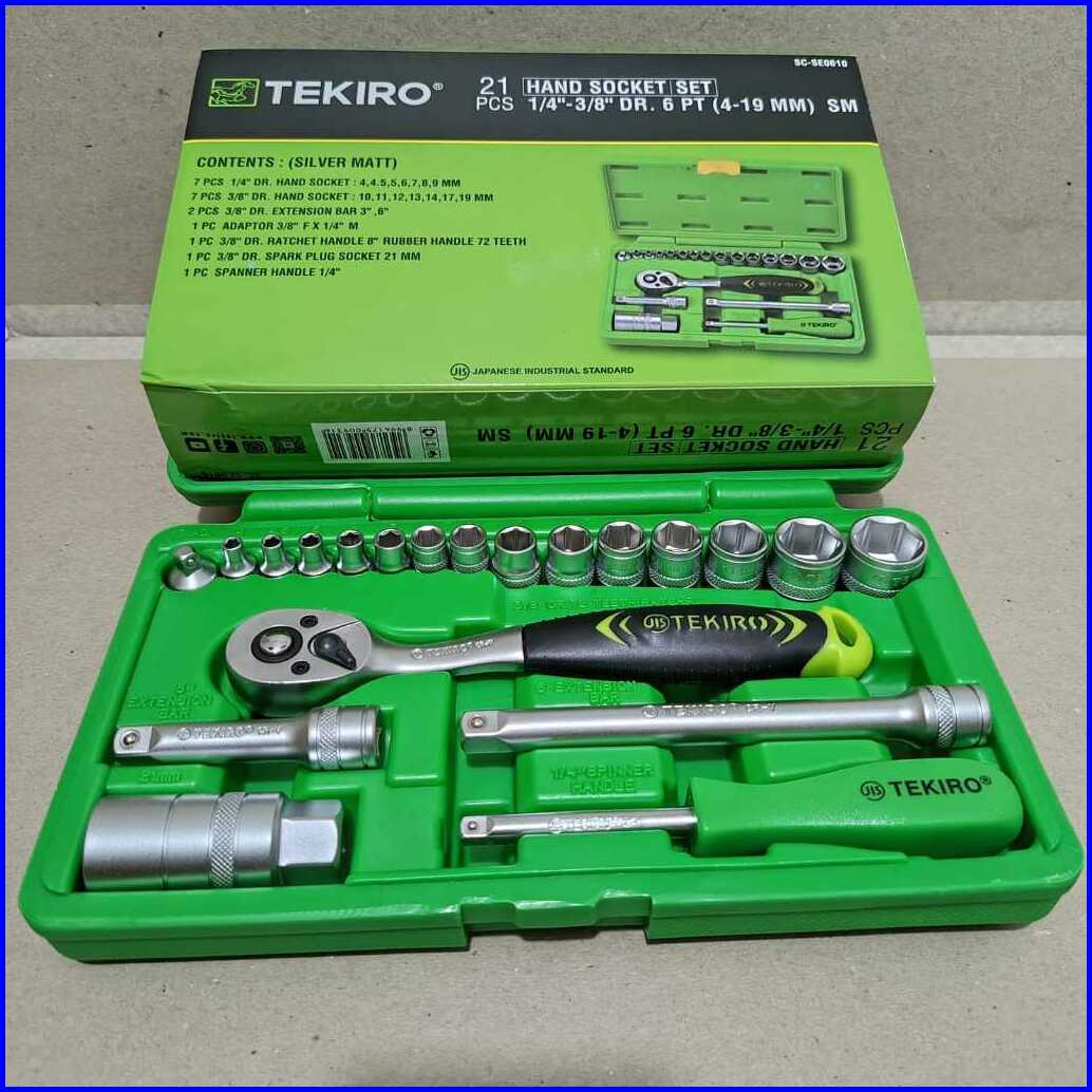 Kunci Sok Set Tekiro 21 Pcs Socket Wrench 1 4 - 3 8 6 Pt 4-19 Mm Lengkap Gagang Rachet Full Set