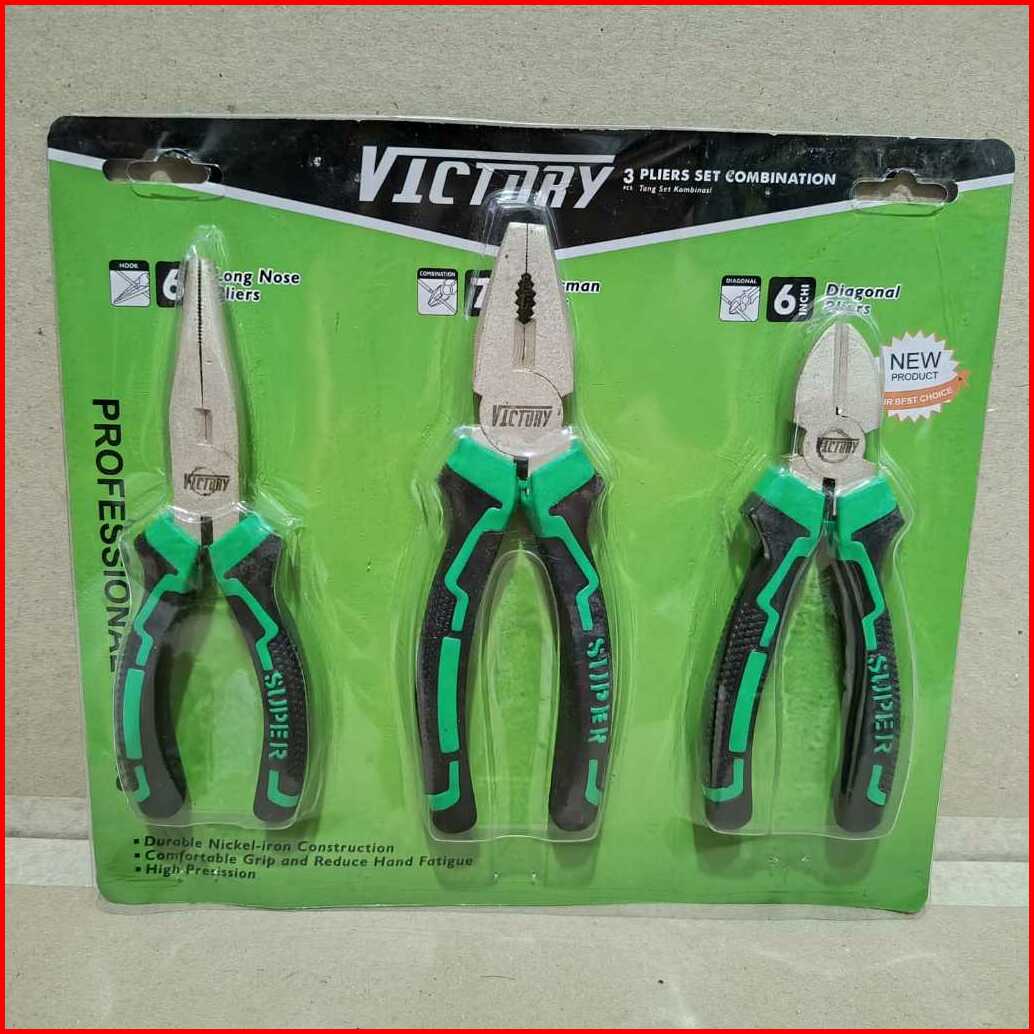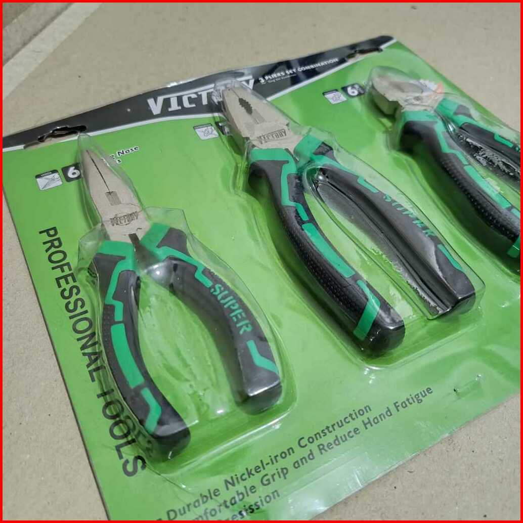 Victory Tang Set 3 Pcs Tang Kombinasi Tang Potong Tang Lancip Paket Tang Lengkap Murah