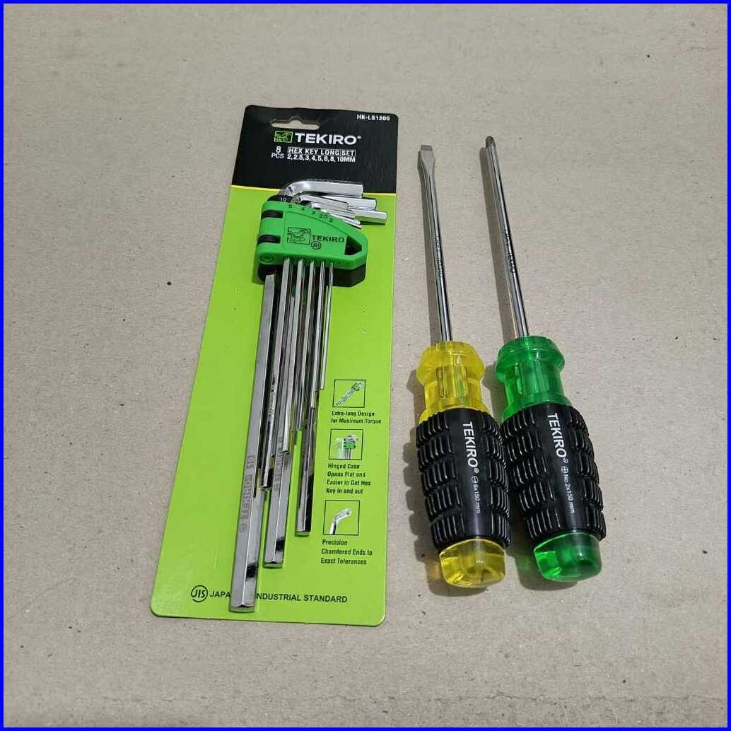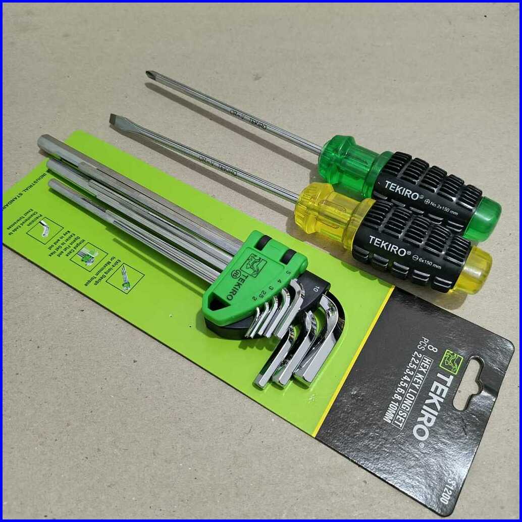 Tekiro Hemat 2 Set Kunci L Set 9 Pcs Obeng Gagang Karet Plus Minus - 150mm Ph 2 Obeng Tekiro 2 Pcs Lengkap Kunci L Tekir