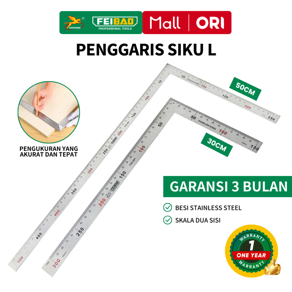 Feibao Penggaris Siku L 30-50CM Penggaris Siku Tukang Stainless Kualitaas terbaik