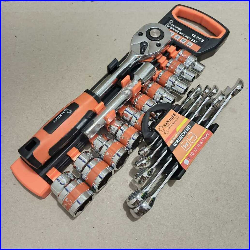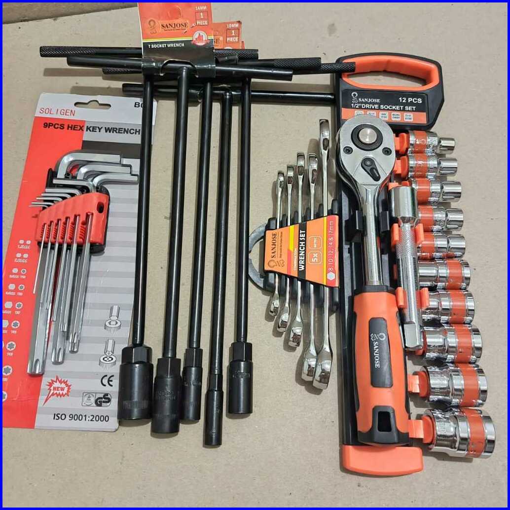 Paket Tool Set 4 Pcs Kunci Shock Sok Set 12 Pcs 8 - 24mm Kunci T Hitam Set 5 Pcs 8-10-12-14-17mm Ring Pas Set Kunci L Ko