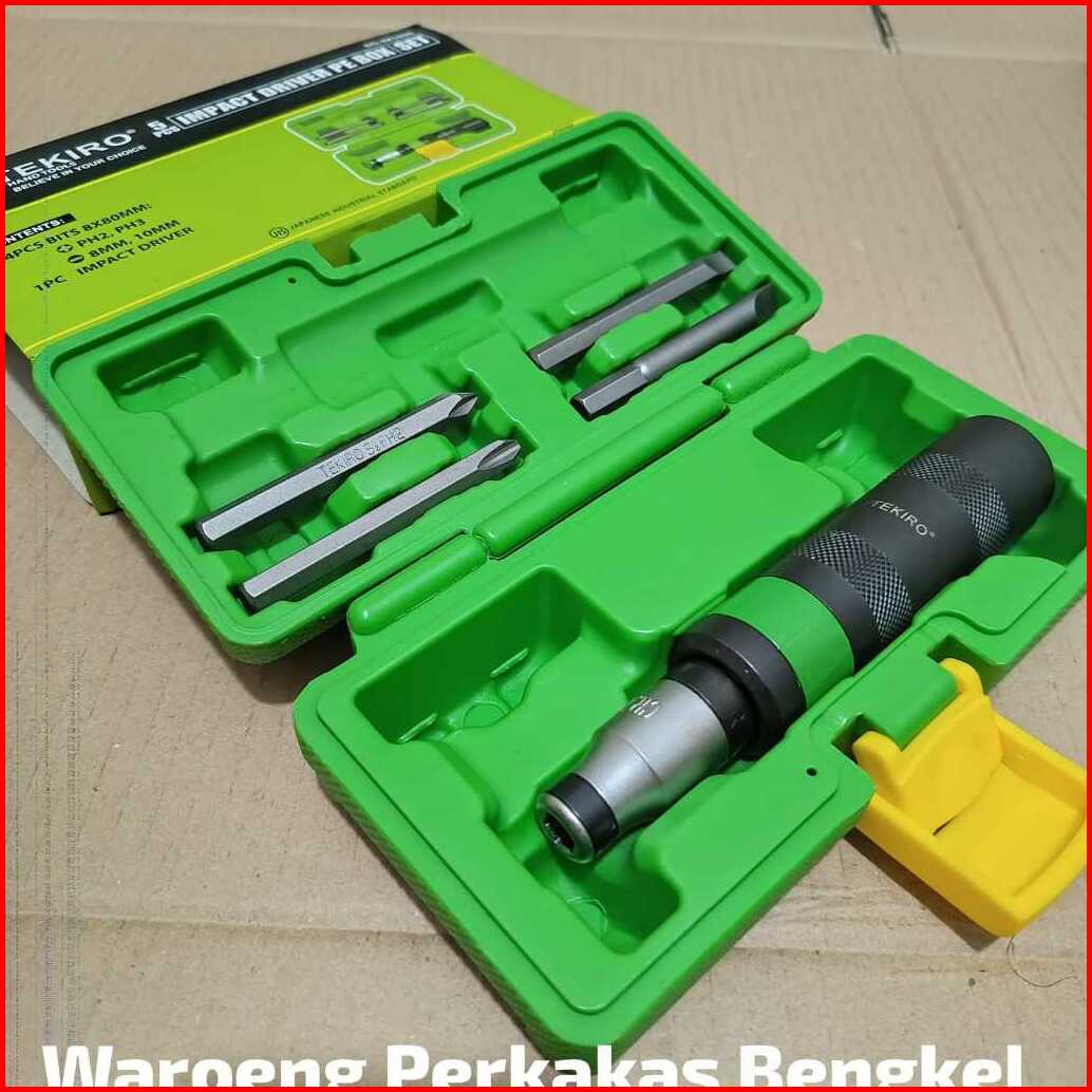 Obeng Ketok Tekiro 5 Pcs Impact Driver Set 7 Pcs Lengkap 1 Box - Obeng Ketok Ph2 - Ph3 Plat 8 - 10