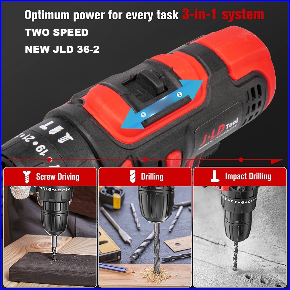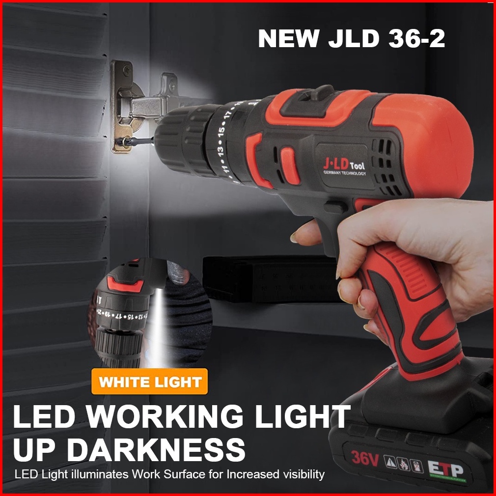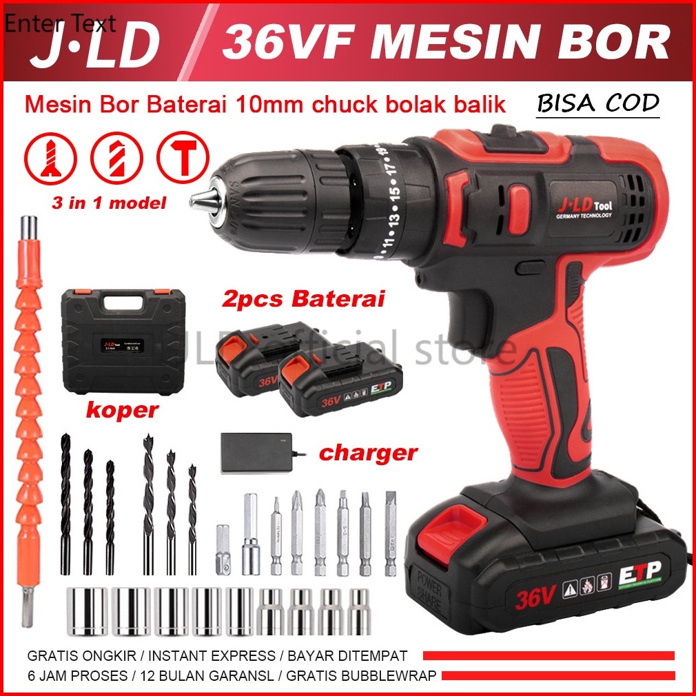Jld 36vf Mesin Bor Cas 2baterai-35nm Mesin Bor Baterai Cordless -bor Impact Bater Original Besi -bor Cas Murah Bolak Bal