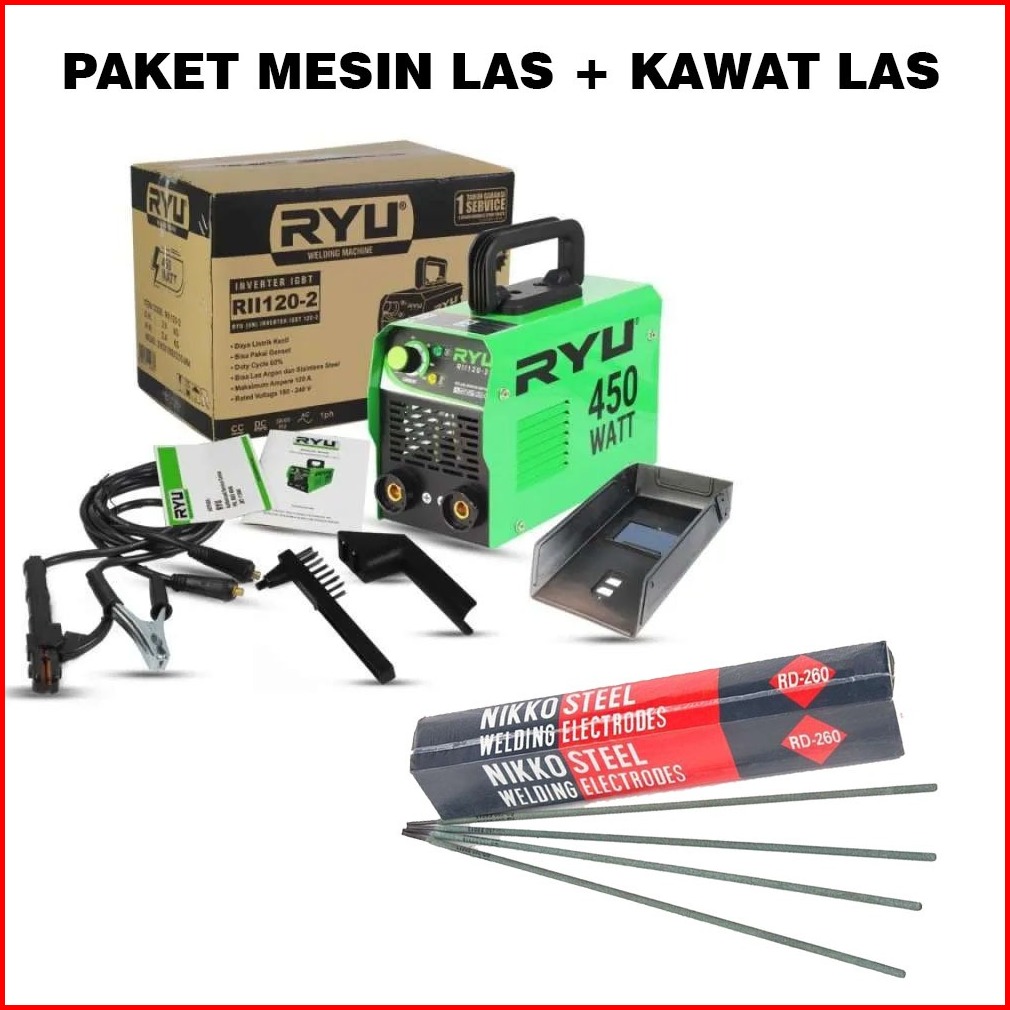 Mesin Las Ryu Rii 120-2 450 Watt Inverter Trafo Las Listrik 120a Kawat Las 2.0mm Nikko Steel