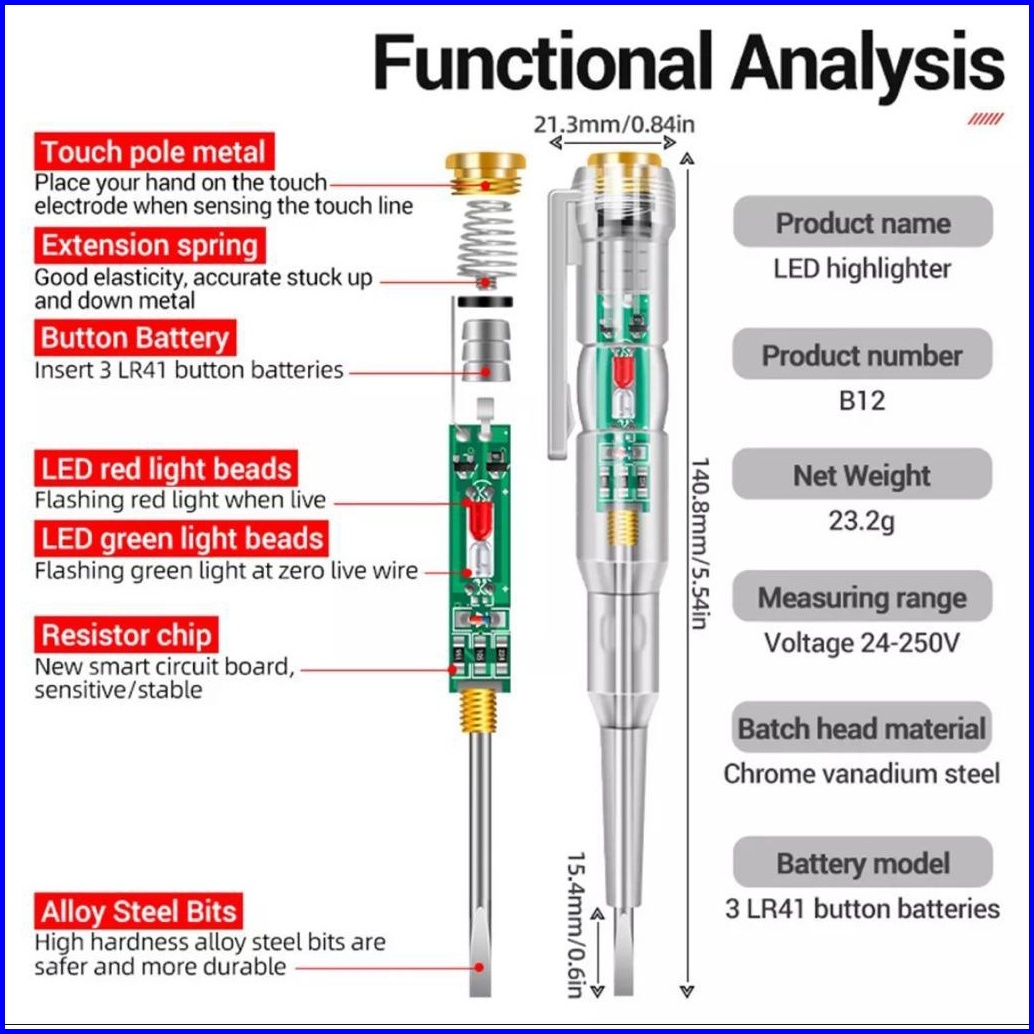 Tespen Multifungsi Dc Ac Obeng Testpen Kabel Putus Test Pen Listrik Tes Pen Led