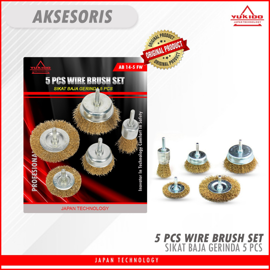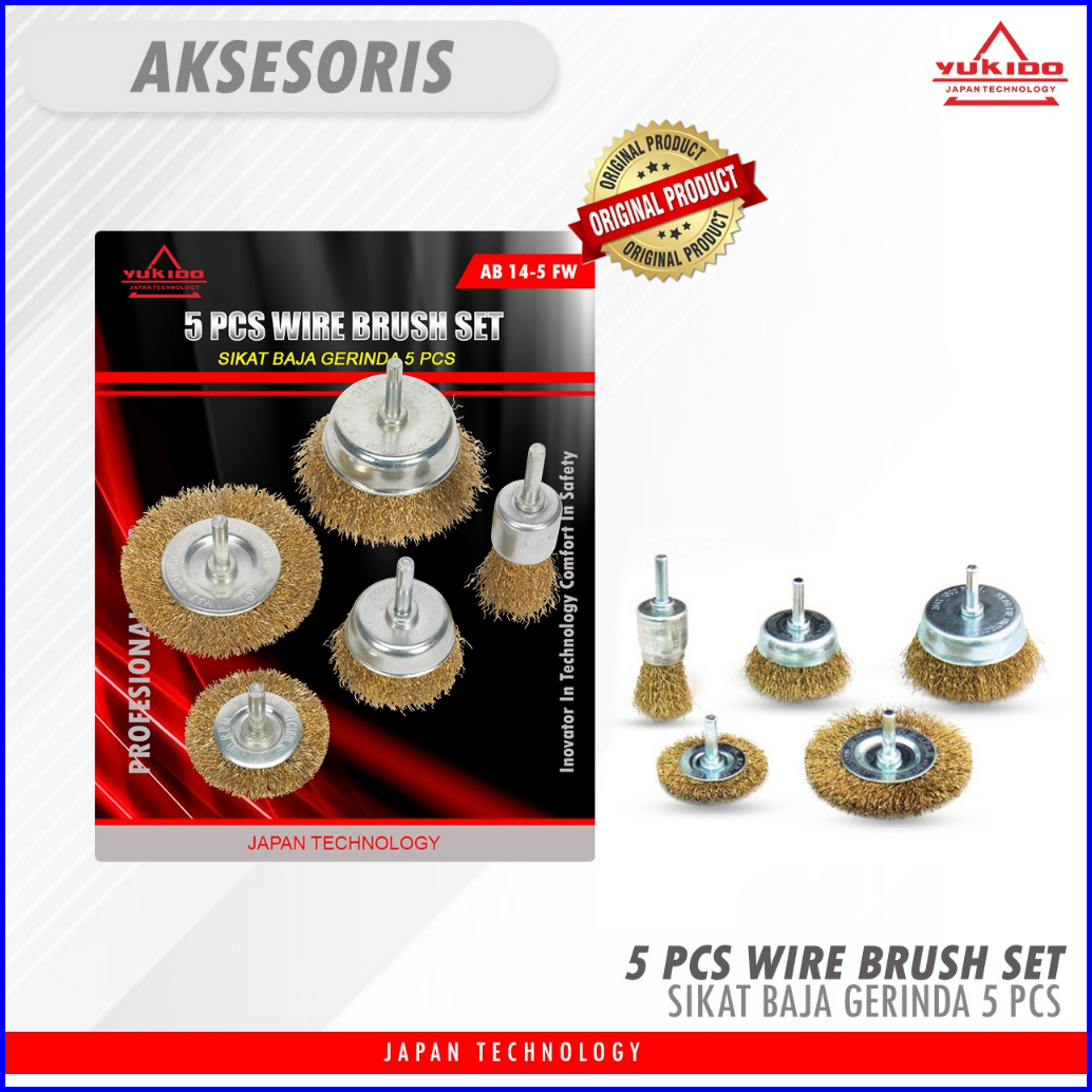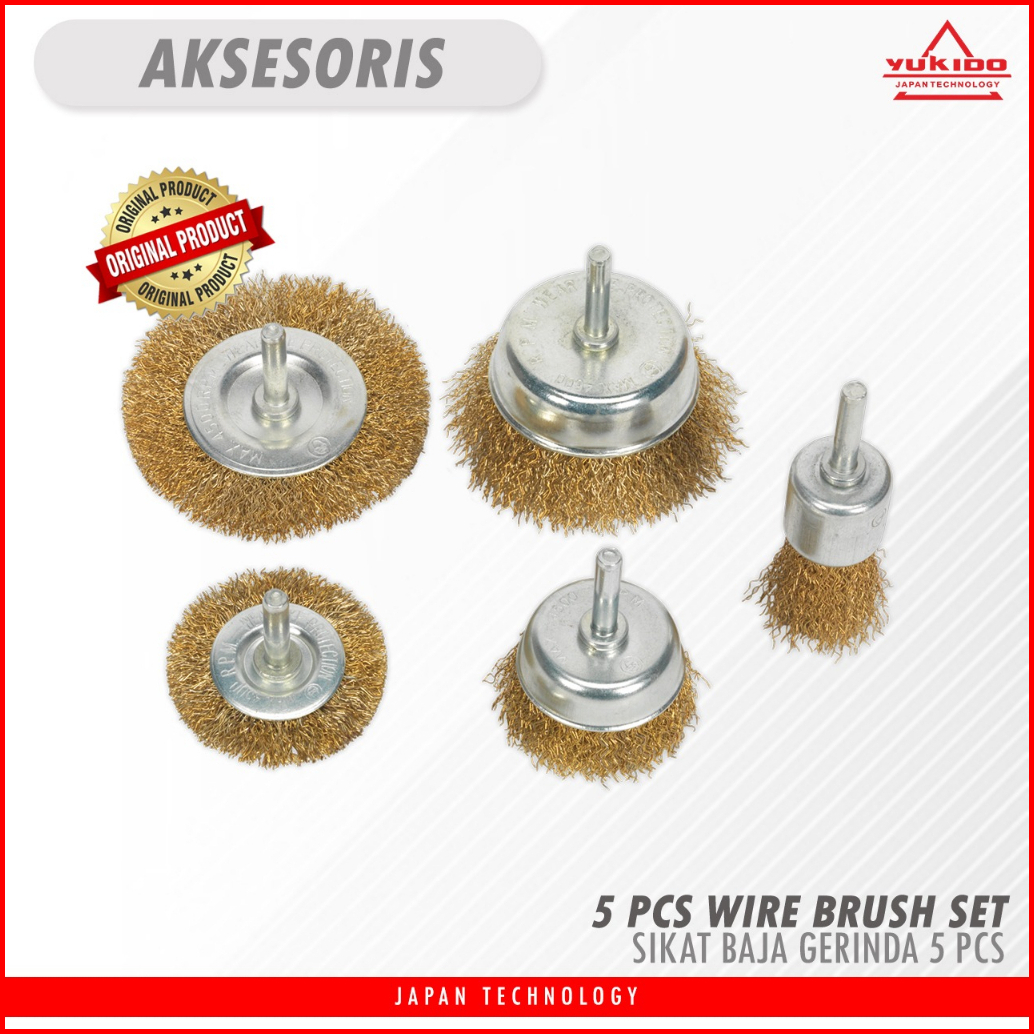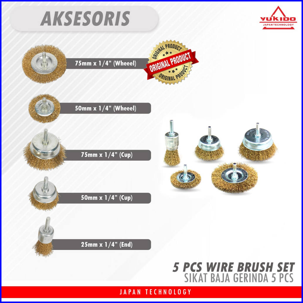 Sikat Kawat Gerinda Mini 5pcs Mollar D83610 25mm 55mm 65mm Mata Bor Sikat Baja Serabut Model Mangkok Tabung Piring Wire
