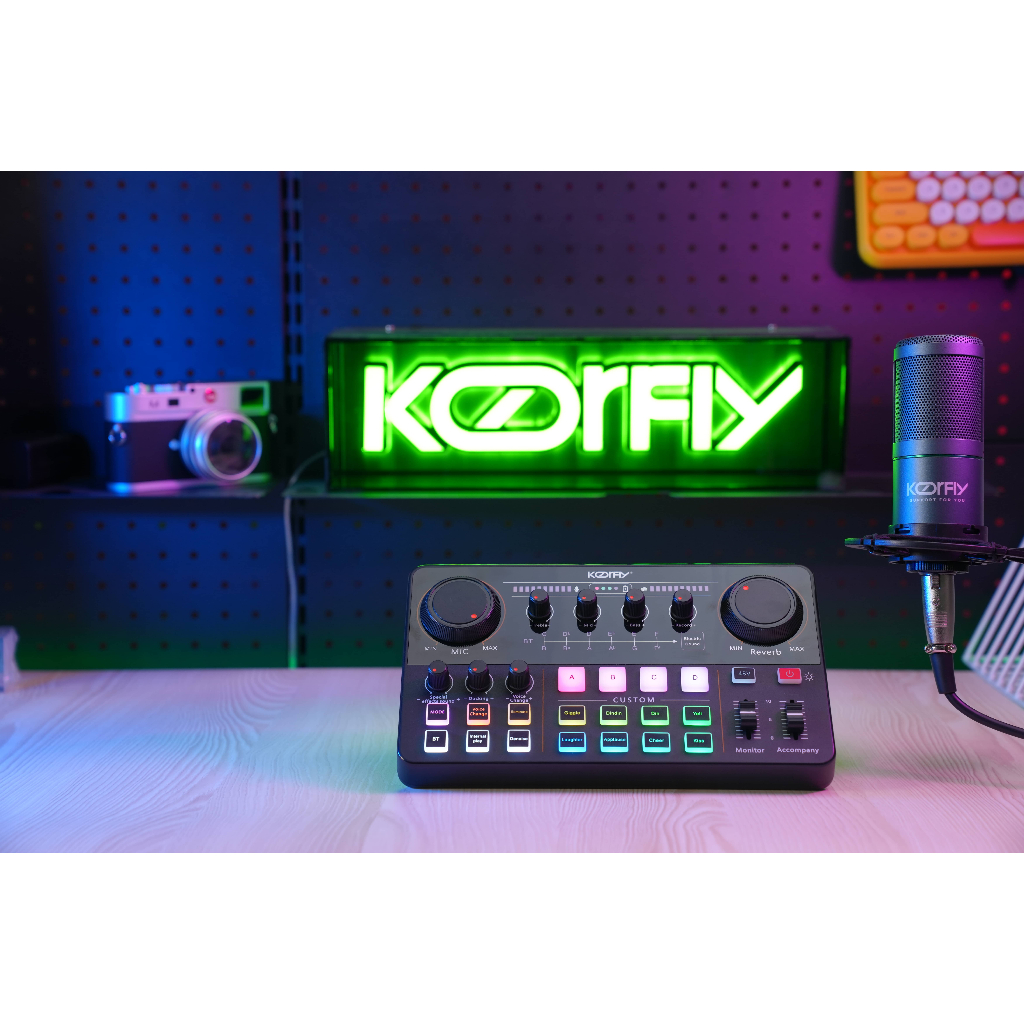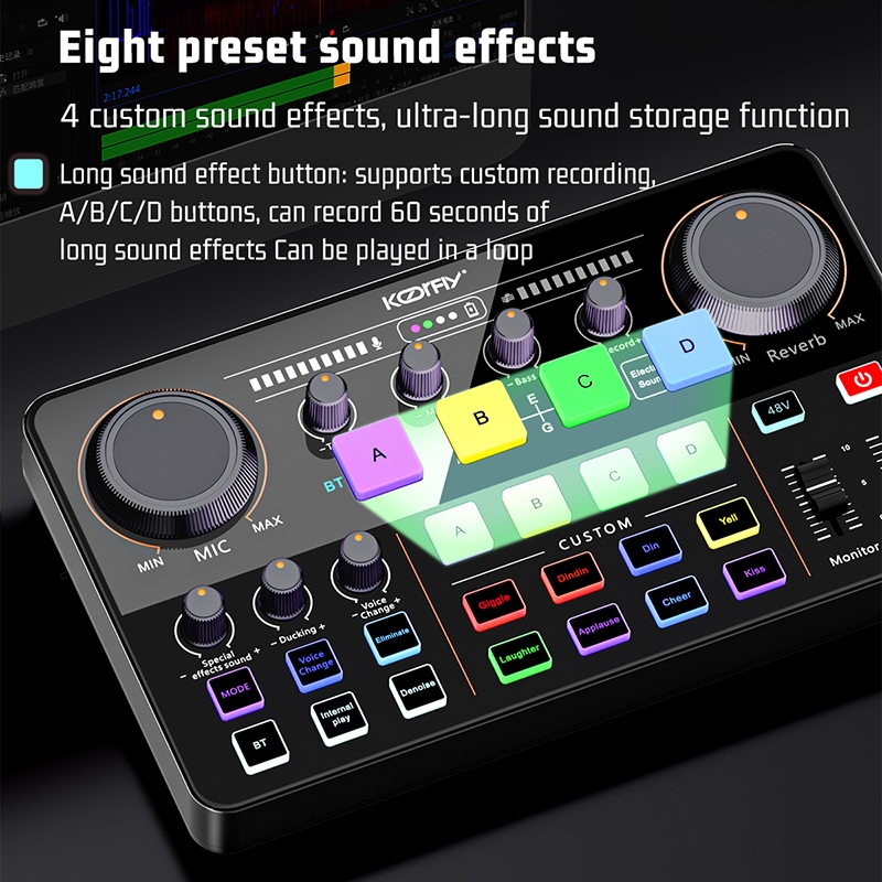 Live Soundcard Live Mixer - 4 DIY Efek Suara/12 Efek RGB/ Untuk Konten Kreator Audio Live stream Karaoke Sound card