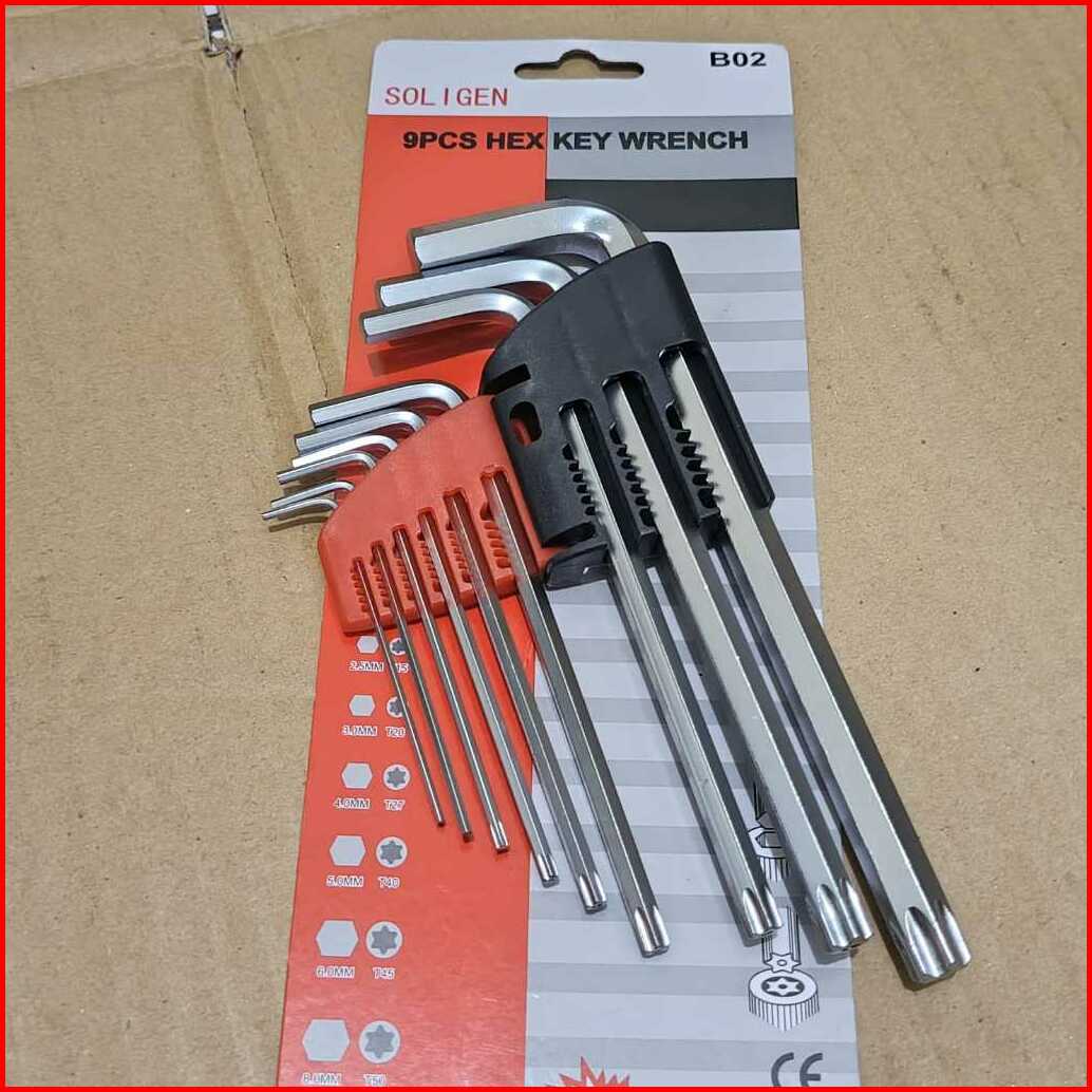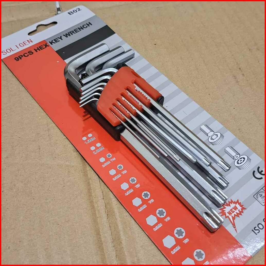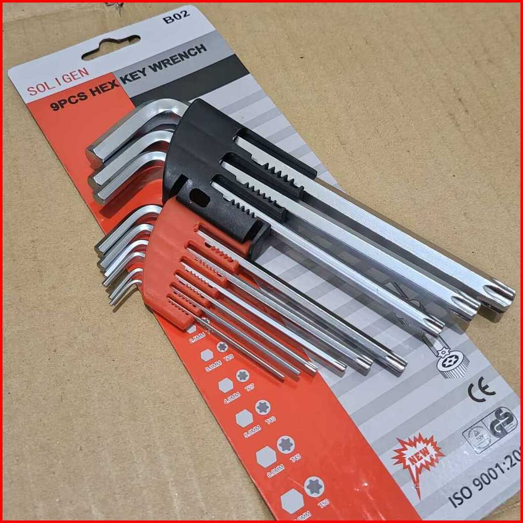 Kunci L Soligen B02 Kunci L Kombinasi Bintang Lubang Set 9 Pcs Hex Key Wrench Kunci L 1 Set Lengkap