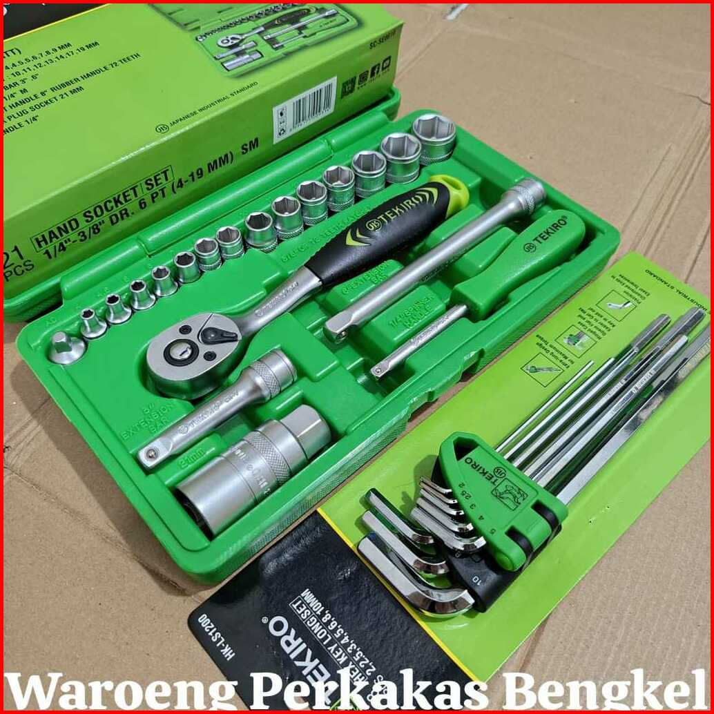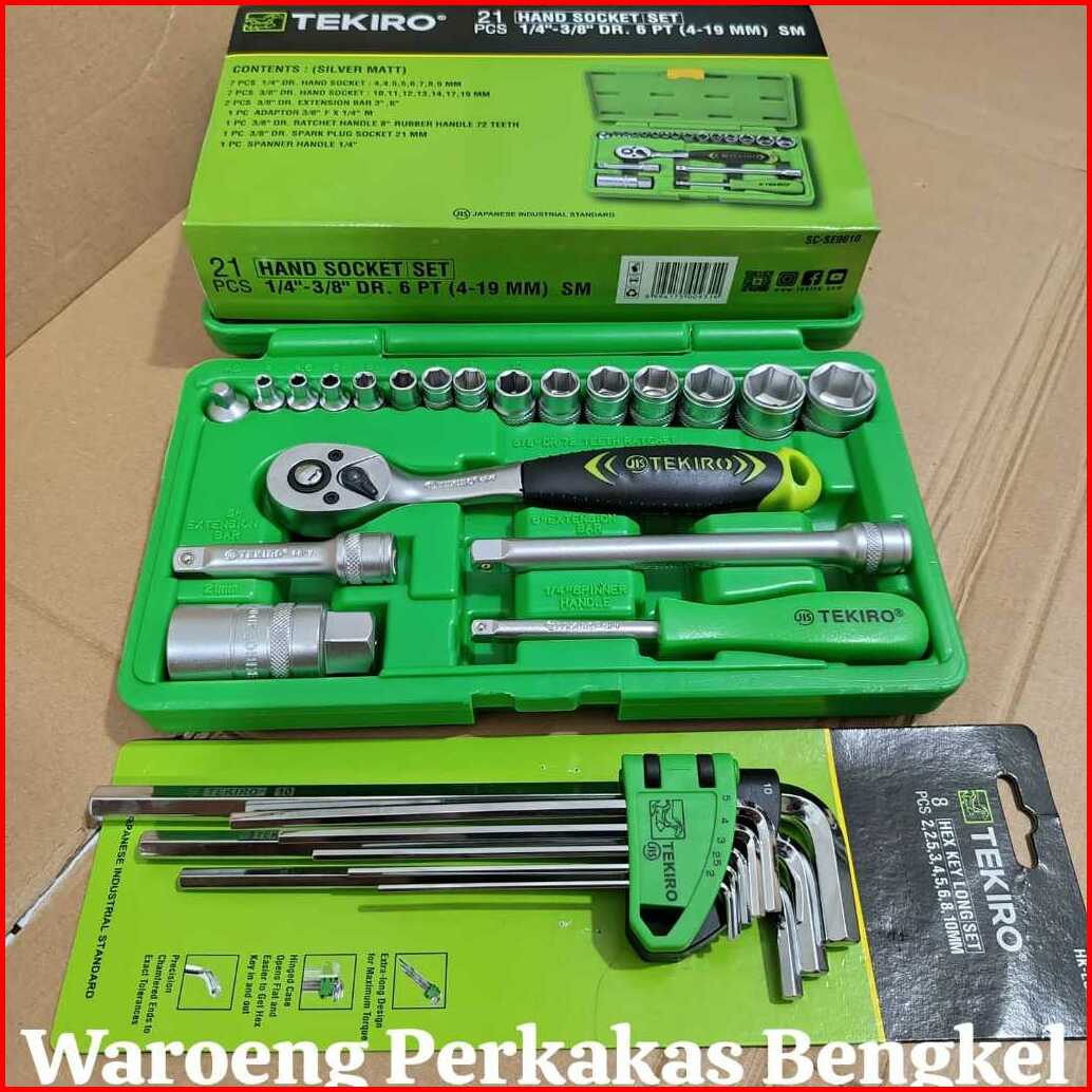 Tekiro Kunci Shock Sok Set 21 Pcs Socket Wrench 1 4 -3 8 Tekiro 21 Pcs Kunci L Panjang 9 Pcs