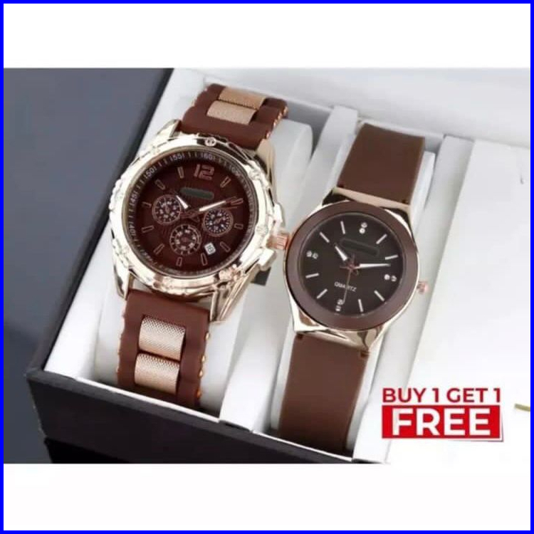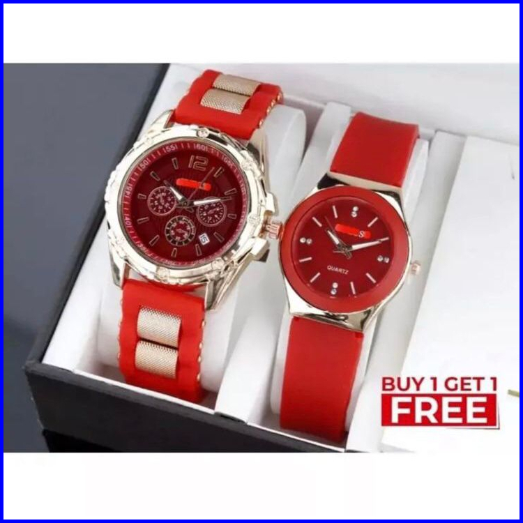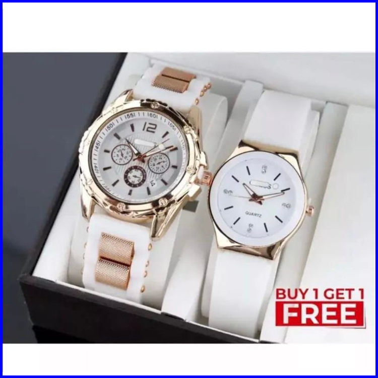 Promo Beli 1 Gratis 1 Jam Tangan Wanita Pria Couple Guess Strap Rubber Fashion Karet Analog Quartz Mewah Elegan