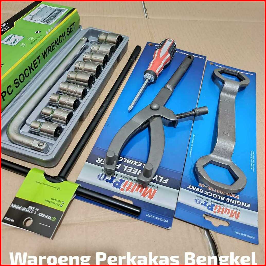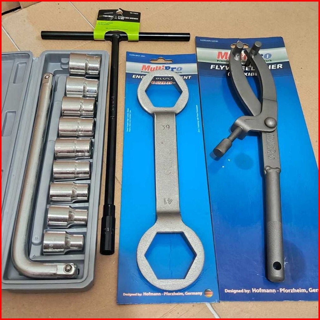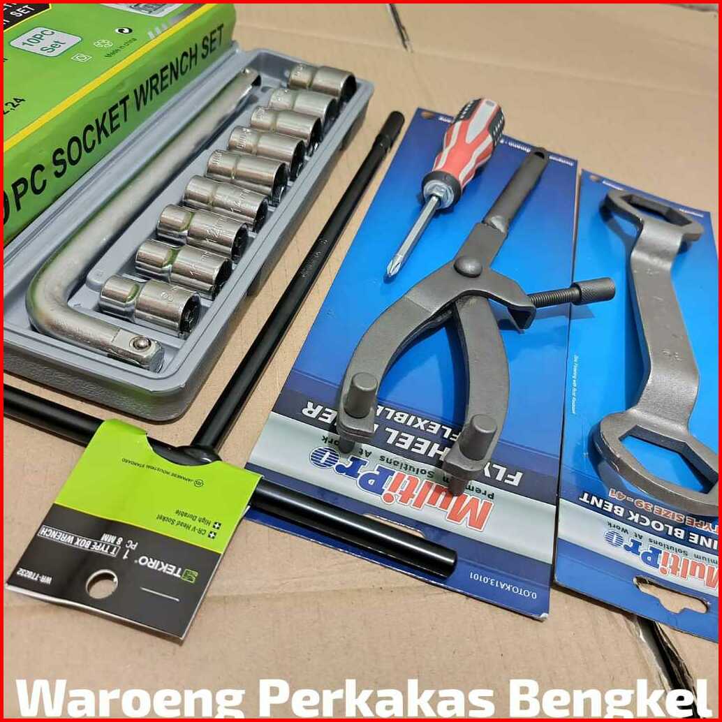 Paket Alat Bongkar Cvt 5 Pcs Kunci Sok 8-24 Mm Tanahan Cvt Mur Fully 39x4mm T8 Tekiro Obeng Min Plus