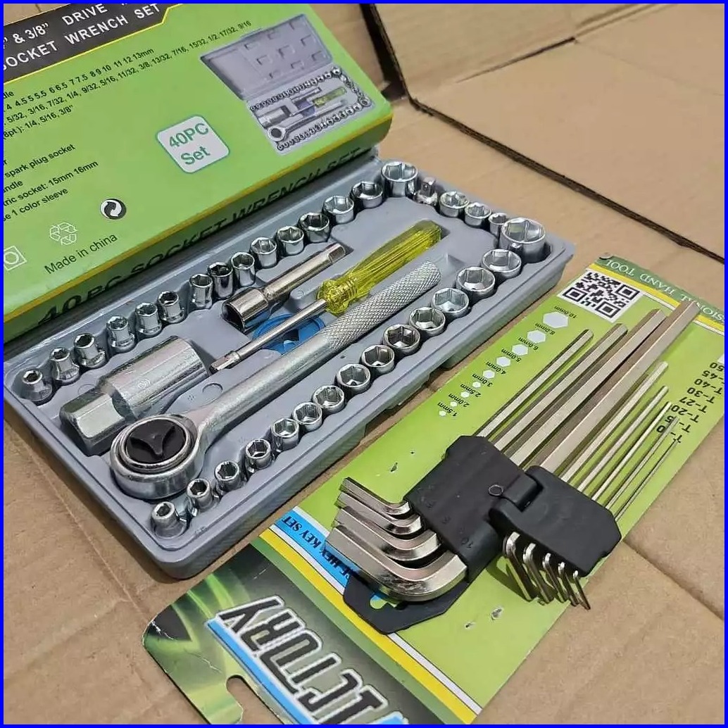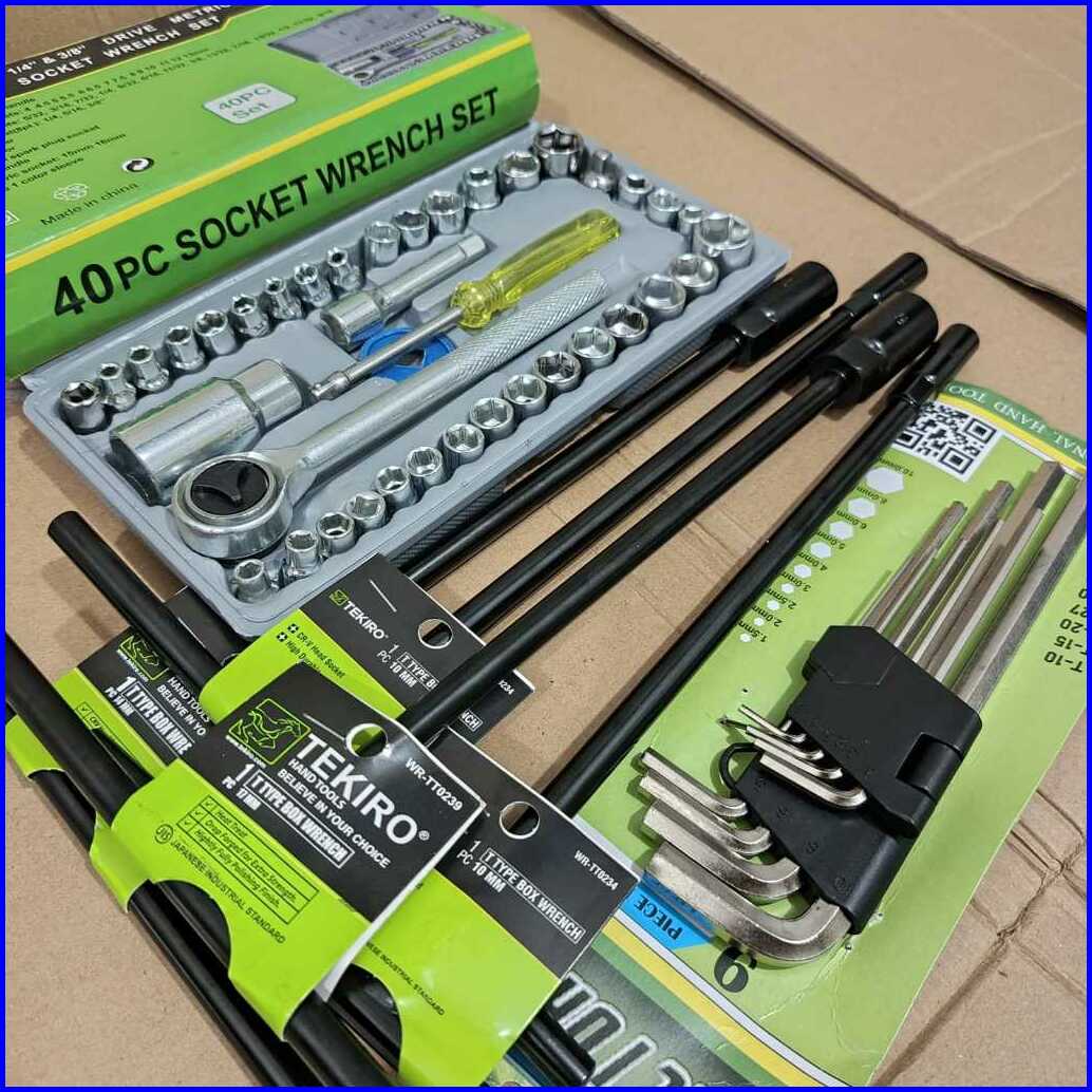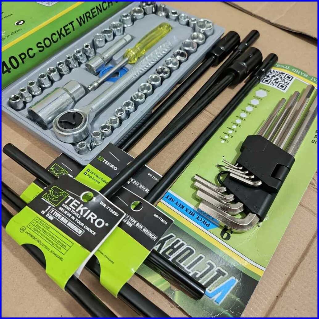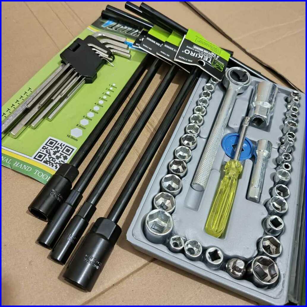 Tekiro Kunci T 4pcs 8-10-12-14mmn Kunci Shock Sock Set 40 Pcs Kunci L Set 9 Pcs Paket Kunci Lengkap Perkakas Motor