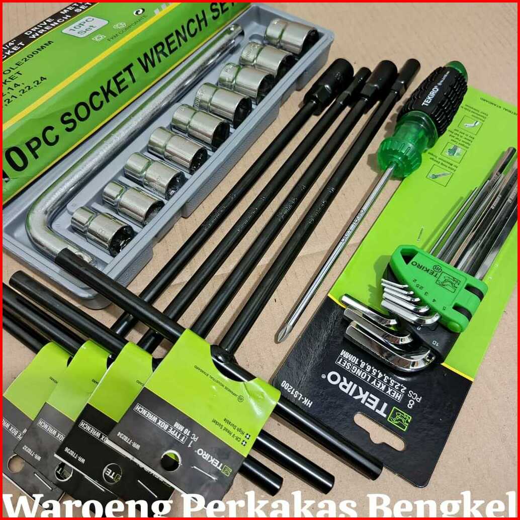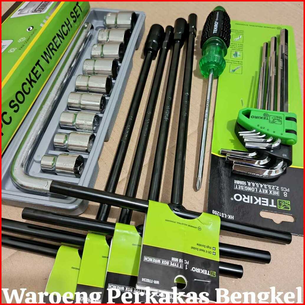Paket Lengkap Kunci Bengkel Motor Tekiro 4 Set Kunci T Tekiro 8-10-12-14 Mm Kunci Sok 8-24 Mm Kunci L Panjang 8 Pcs Oben