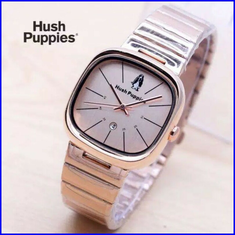 Jam Tangan Wanita Hush Puppies Rantai Segi Stainless Tanggal Aktif
