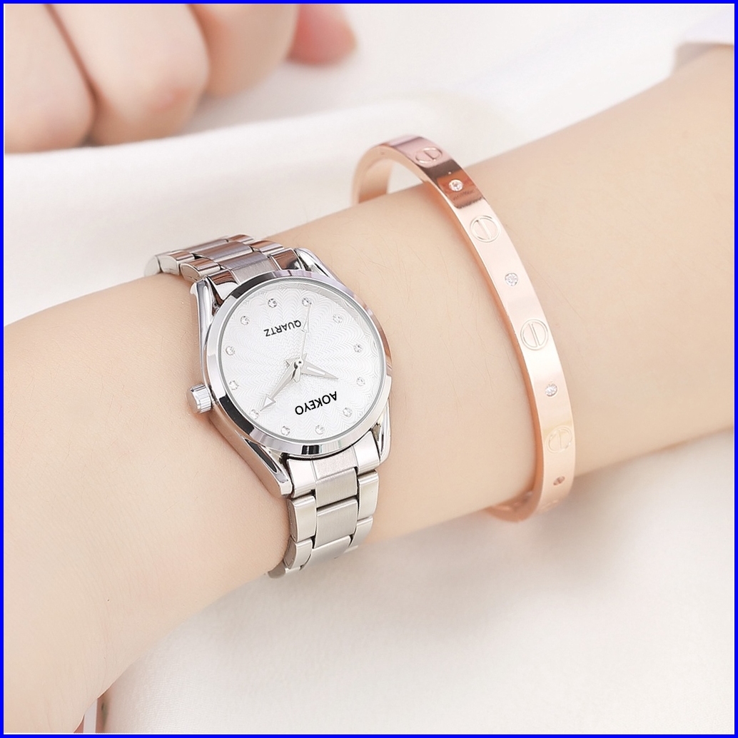 Aokeyo W579 Jam Tangan Wanita Original Tahan Air Santai Mode Stainless Steel Jam Tangan Cewek Free Box Kartu