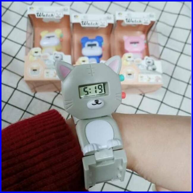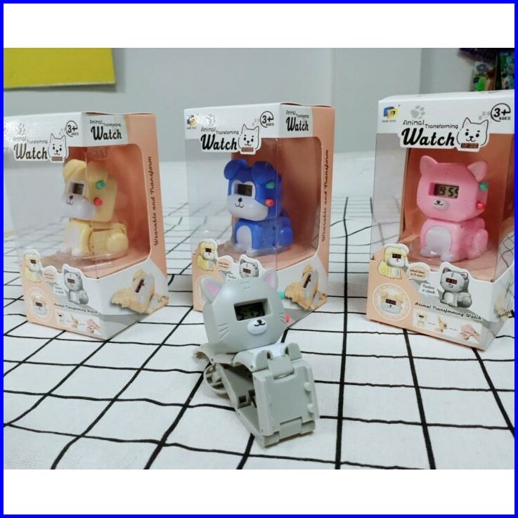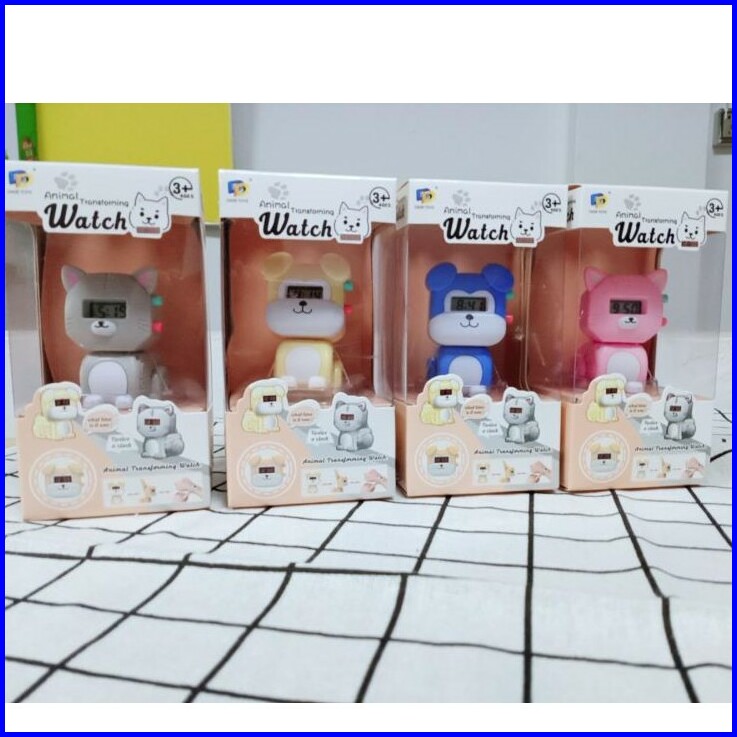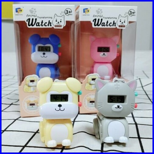 Jam Tangan Anak Dog And Cat Transformer Kucing Dan Anjing Jam Meja Berubah Lucu Imut Unik Digital